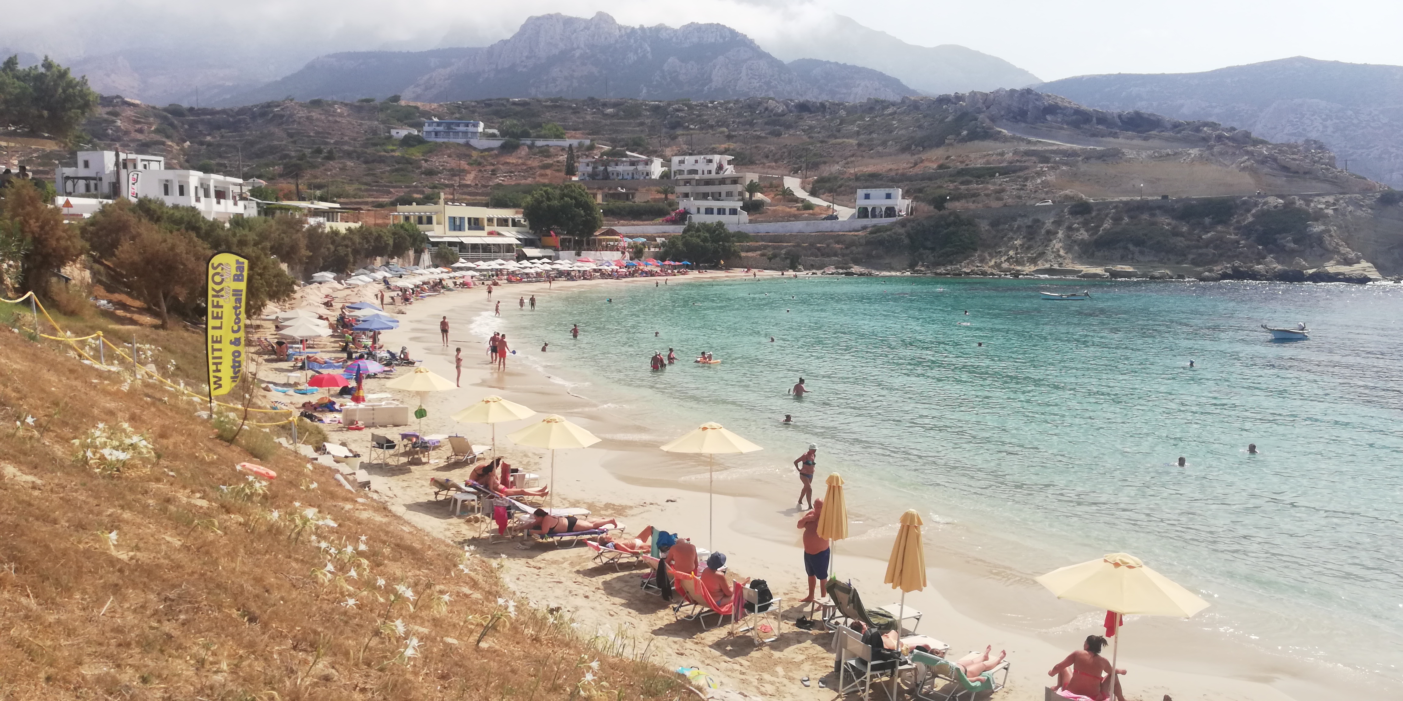 Lefkos: Pittoresca baia chiusa nella zona centro occidentale di Karpathos. Zona turistica che offre strutture dove alloggiare e taverne, oltre ad una splendida spiaggia attrezzata di sabbia bianca.