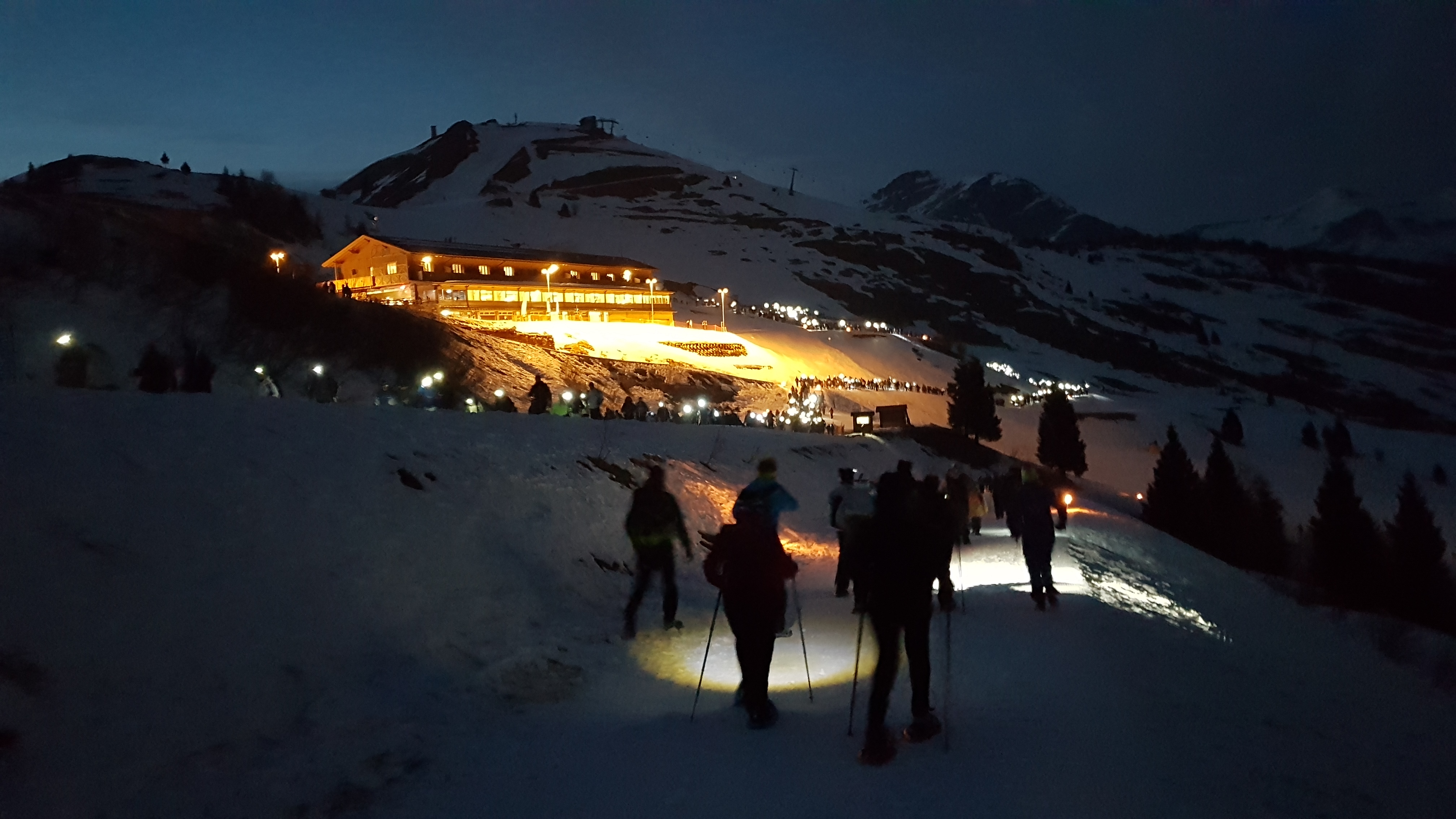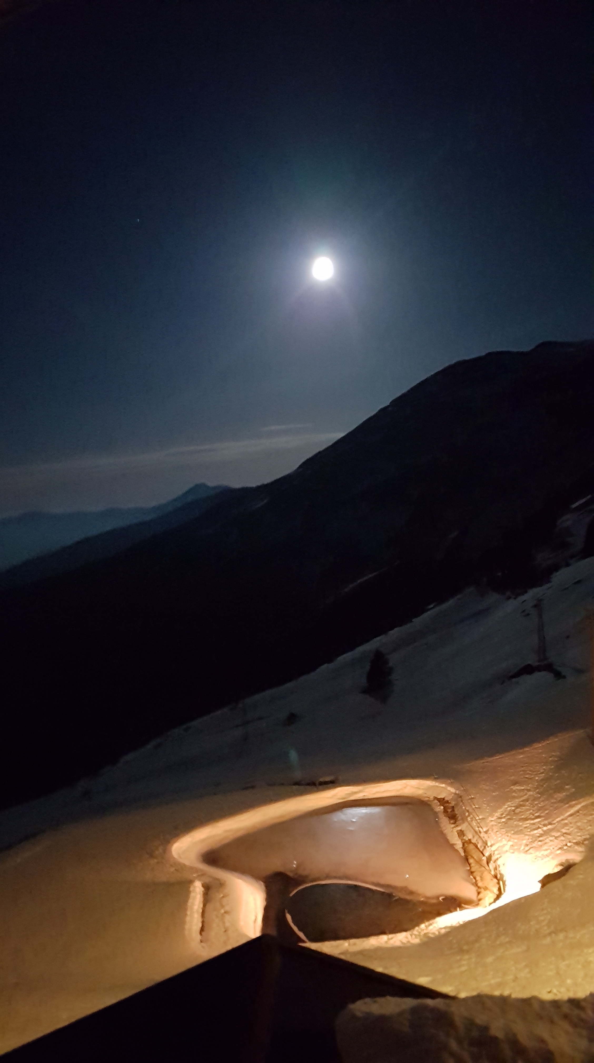 La ciaspolata è stata la protagonista della giornata. Un evento organizzato perfettamente che contava circa 2000 persone. A tutti i partecipanti è stato consegnato un kit omaggio che comprendeva il proprio tagliando di partecipazione e una borraccia. Con il pacchetto vip ci è stato consegnato direttamente in hotel mentre per tutti gli altri, il punto di ritiro, sia del kit che delle ciaspole, era allo Chalet Maniva. Alle ore 18 è stato dato il via ai partecipanti con fuochi d’artificio e dj set a fare da intrattenimento musicale. Una bellissima camminata immersi nella natura sotto la luce della luna piena. Ciaspolata adatta a tutti, grandi e piccini, anche se in alcuni punti in salita un po’ faticosa. Arrivati al punto di ristoro, dove ci siamo rifocillati con bevande calde e qualche snack, il percorso si divideva: da una parte si tornava allo Chalet mentre dall’altra, i più allenati e dotati di ciaspole potevano cimentarsi con un tipo di percorso più difficoltoso. L’arrivo è stato scandito ancora da fuochi d’artificio, dj-set e possibilità di cenare allo Chalet Maniva.