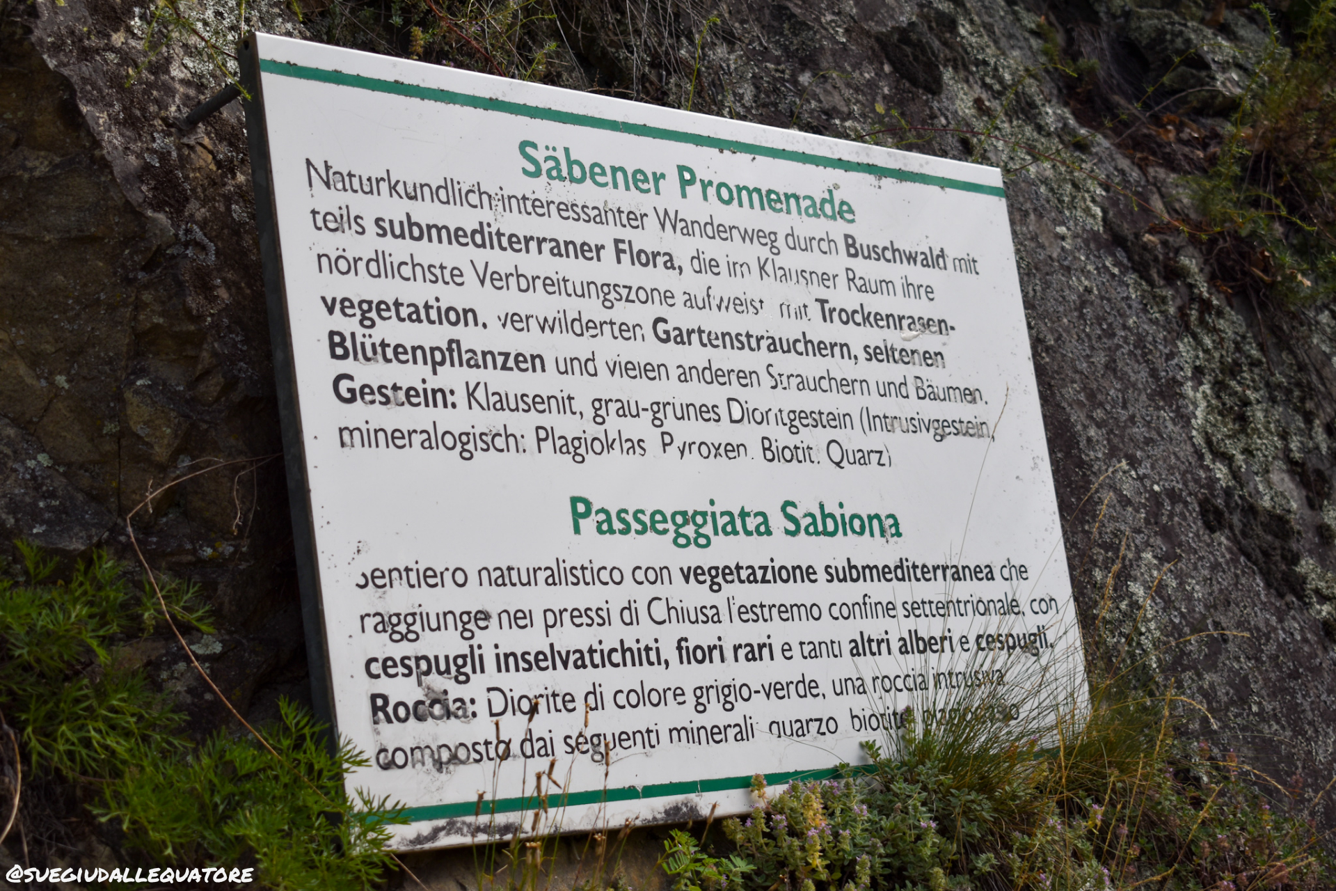 Mentre ci dirigevamo in Alta Badia abbiamo fatto tappa a Chiusa, dedicandogli mezza giornata. Oltre a visitare il centro storico con tutte le sue biciclette colorate lungo i vicoli, siamo saliti verso il Monastero di Sabiona. Abbiamo seguito le indicazioni presenti nella via principale, per poi proseguire per una salita suggestiva di circa 30 minuti. Bellissimo il panorama di cui si gode da lassù. Il monastero era chiuso alle visite ma abbiamo potuto visitare una piccola chiesetta sul suo lato destro. Stupendo anche il giardino botanico, un’esplosione di colori.