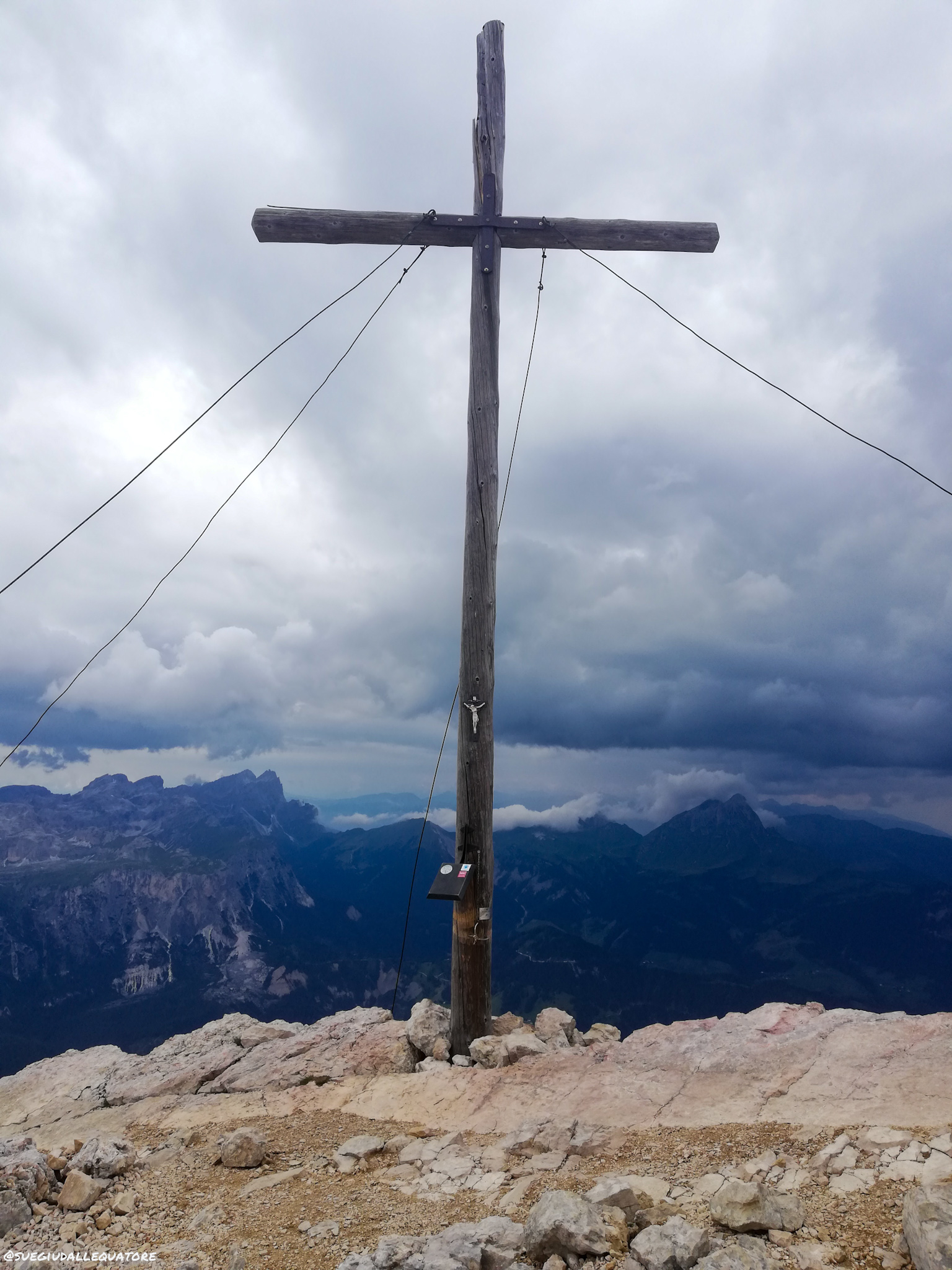 Arrivati qui vi troverete ad un bivio. Seguite il sentiero che prosegue a sinistra verso Sas dla Crusc e Cima Dieci, il numero 7B. Questo tratto in cima alle dolomiti verso la croce del Ciaval è molto ripido e faticoso, soprattutto l’ultimo pezzo verso la vetta. Prima di arrivare in cima troverete il bivio con il sentiero per Cima Dieci (per i più temerari). Noi proseguiremo per la nostra meta (L’Ciaval) per altri 20 minuti di ripida salita. Superato questo tratto siete arrivati in vetta.