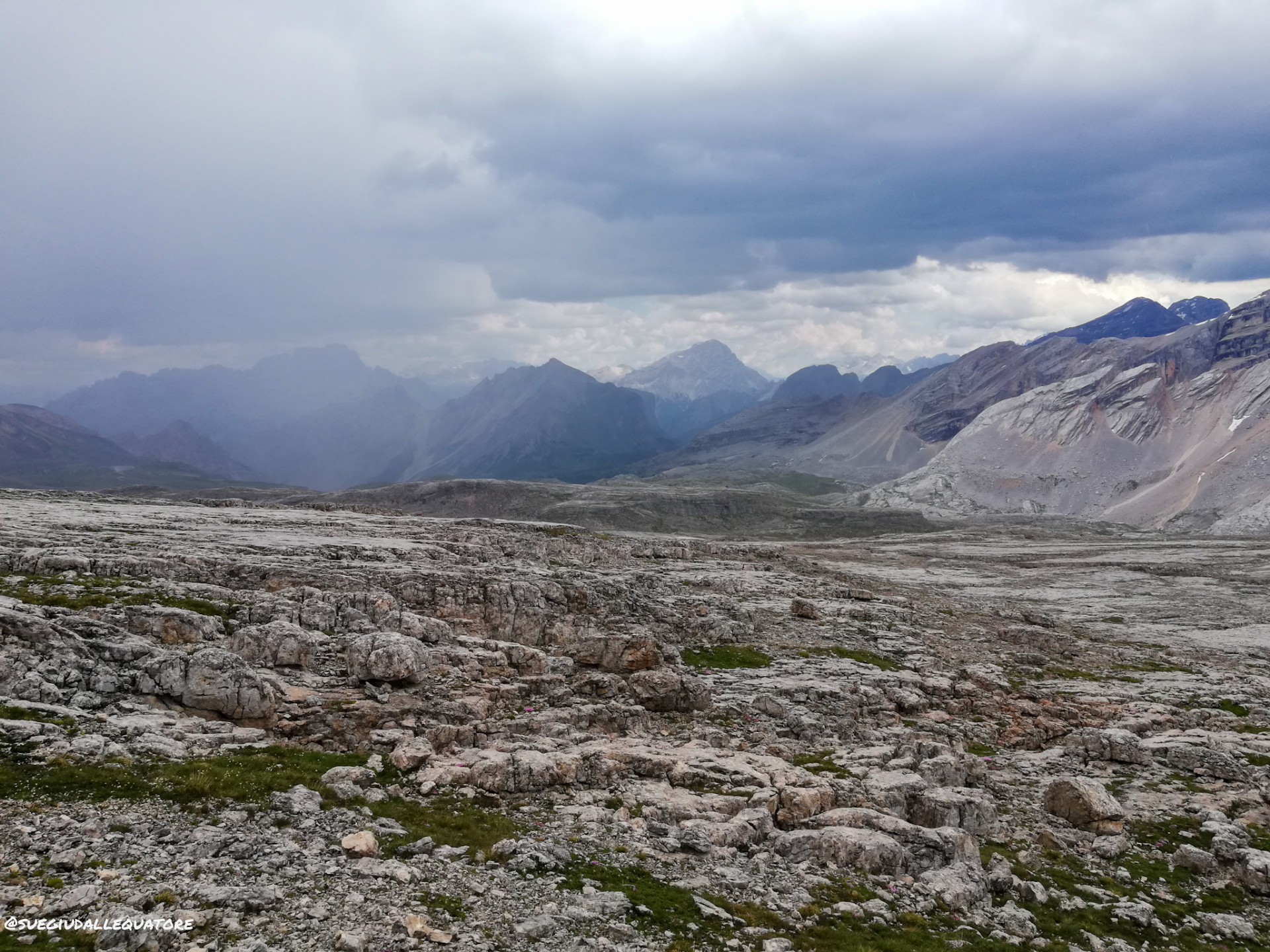 Proseguiamo nel bel mezzo del Parco Naturale di Fanes dove sembra di essere sulla luna. Il sentiero è completamente su roccia e segnalato con colori bianco e rossi per tutta la sua lunghezza. Proseguiamo fino al bivio con il sentiero n°12, che ci porterà alla forcella. Una volta raggiunto il bivio continuiamo a seguire il sentiero 12 fino ad un canalone di ghiaia, ovvero alla forcella.