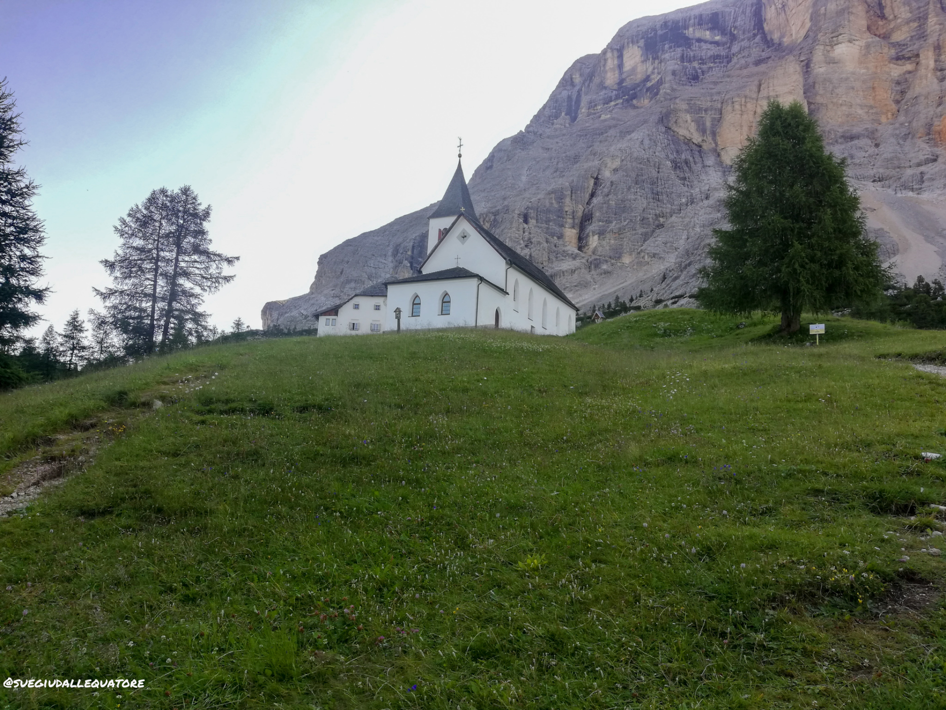 La nostra escursione inizierà dal rifugio La Crusc, che potrete raggiungere in ovovia più seggiovia oppure tramite sentiero, in entrambe i casi dal paese di Badia. Vista la difficoltà e la lunghezza di questo giro ad anello, consiglio l’uso dell’impianto. Vicino al rifugio potrete ammirare la chiesa de La Crusc.