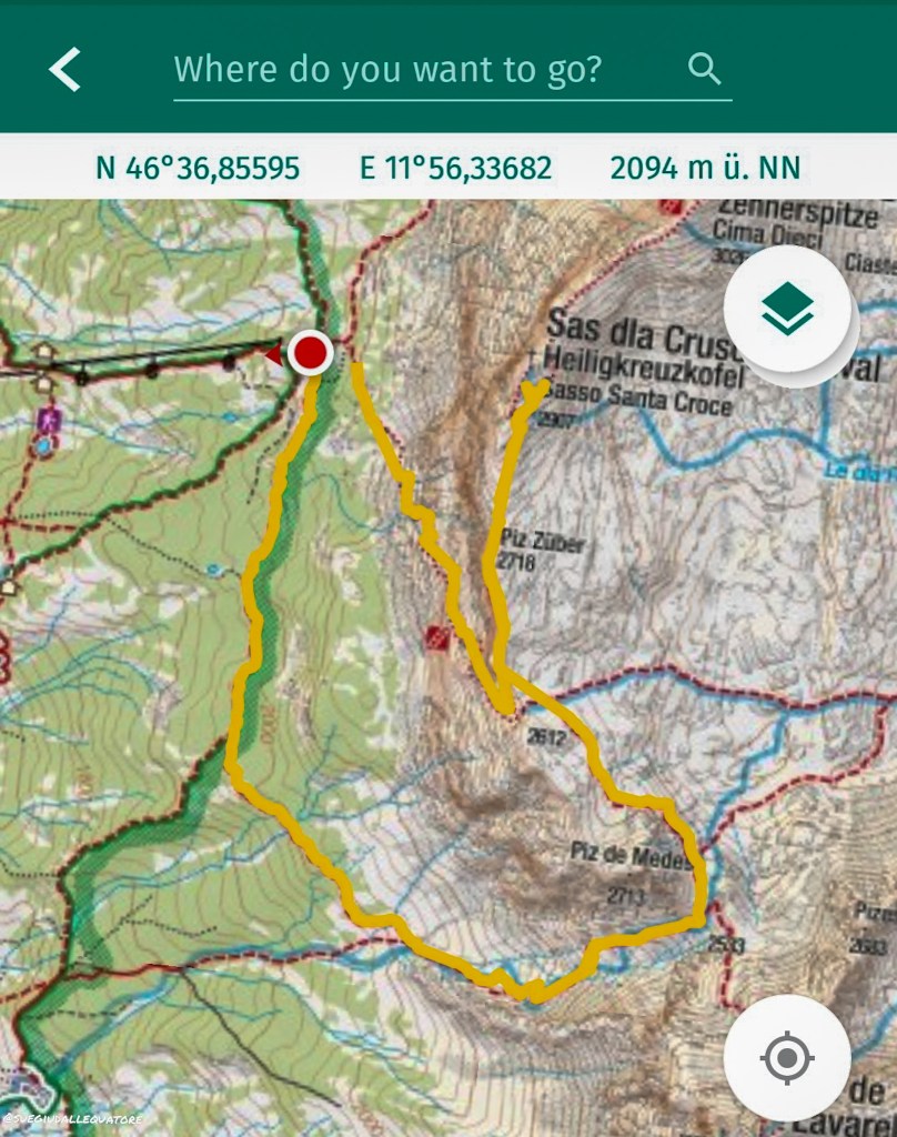 Si tratta di un’escursione molto impegnativa con un tratto di via ferrata nella salita che porta al Passo di Santa Croce. Il dislivello in salita è di circa 900 mt. e, in alcuni casi, si fa sentire parecchio con la ripidità dei sentieri molto elevata. Giro ad anello molto panoramico che permette di camminare nel mezzo della Croda di Santa Croce. Fare attenzione alla discesa dopo la forcella vista la ghiaia presente nel canalone. Noi abbiamo completato l’intero giro in circa 6 ore e mezza, con poche pause. Per chi dovesse scendere con l’impianto raccomando di ricordare che la funivia dal rifugio Santa Croce chiude alle ore 17.15 mentre l’ovovia che arriva a Badia chiude alle 17.30. L’alternativa è scendere a piedi fino a Badia.