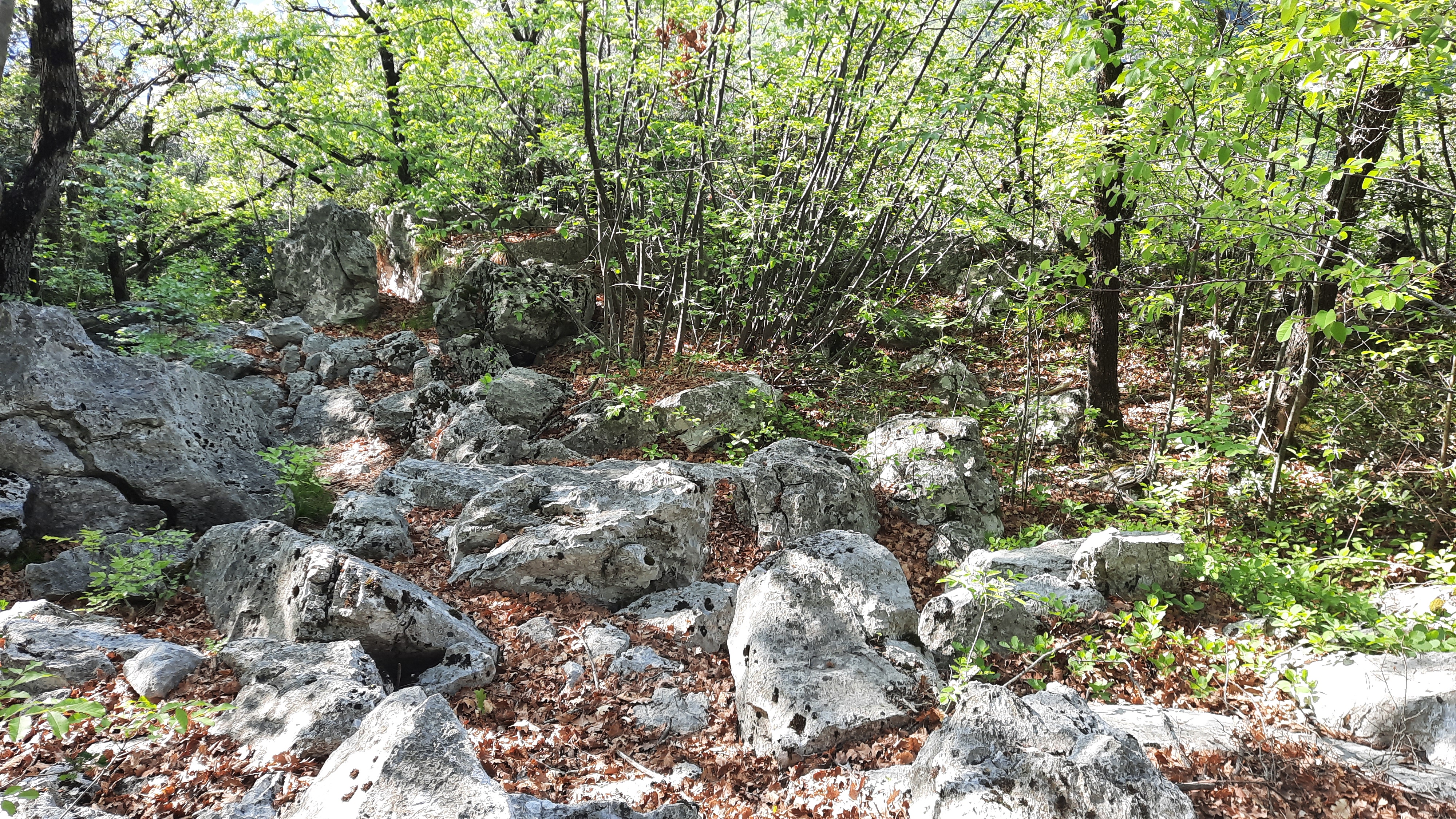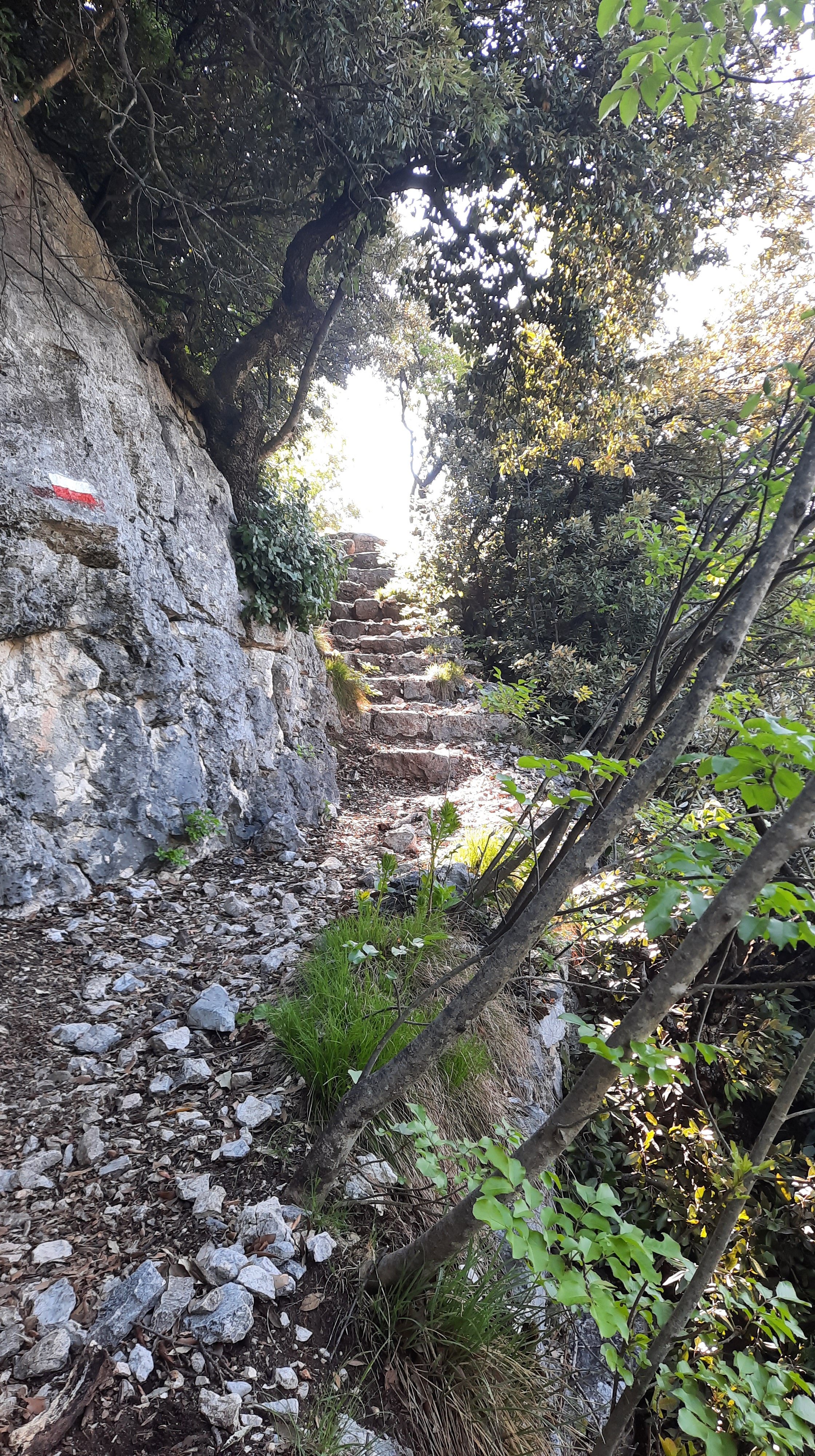 Al bivio tenete la destra prendendo il “sentier dei Bech” numero 470. Proseguite fino ad addentrarvi nel bosco con il sentiero che si fa via via più ripido. Quest’ultimo è sterrato con alcuni tratti in cui dovrete superare, facendo molta attenzione, sassi di grandi dimensioni. Godetevi sulla vostra destra il bellissimo panorama che si apre sul Lago di Garda.