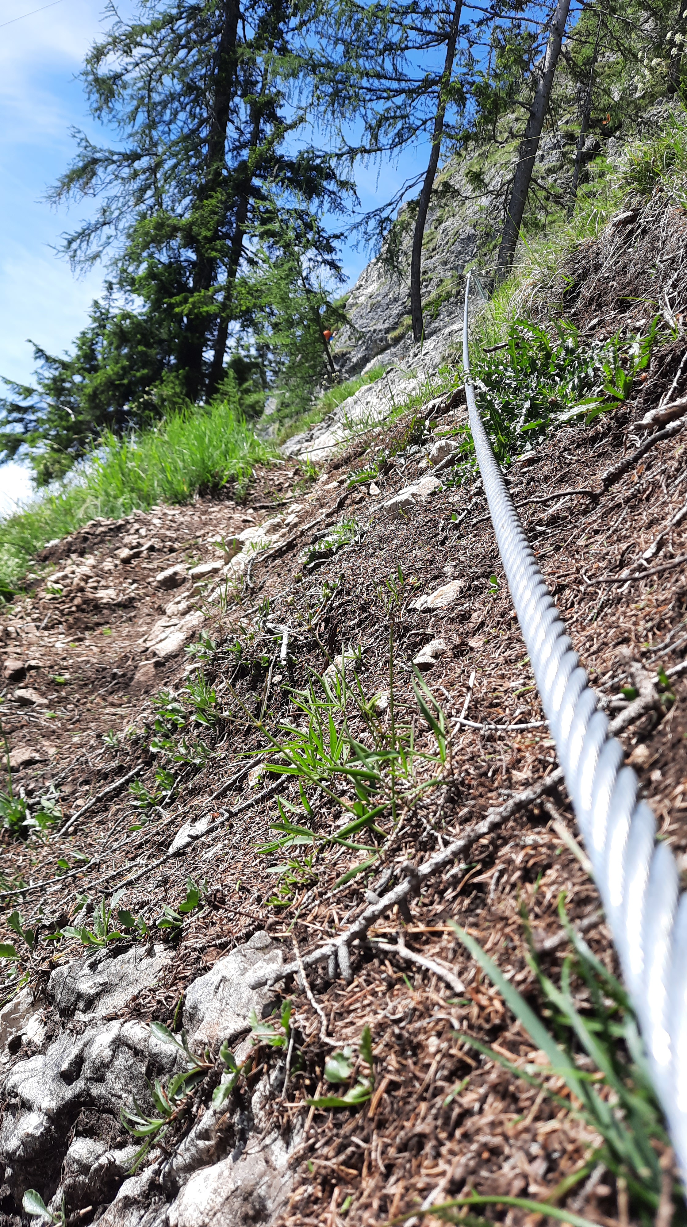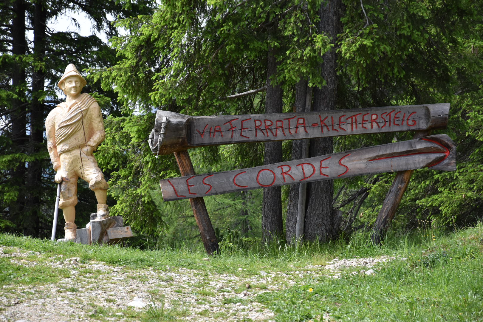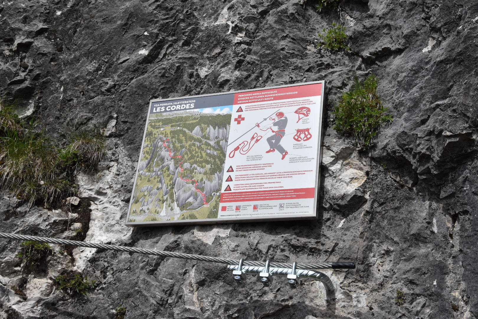 Dalla stazione a monte della seggiovia, svoltate a sinistra dove una grossa insegna di legno indica il sentiero per l’avvicinamento alla ferrata “Les Cordes”. Camminando per circa 15 minuti in questo meraviglioso parco naturale, seguendo il sentiero 11B, arriverete all’attacco della ferrata. Poco prima di arrivare troverete una struttura in legno con alcuni caschi, messi a disposizione per chi, non facendo la ferrata, decide di proseguire tramite sentiero (che raggiunge comunque il rifugio). Questi servono appunto a proteggersi da un’eventuale caduta di sassi lungo la via attrezzata. Una bellissima iniziativa!