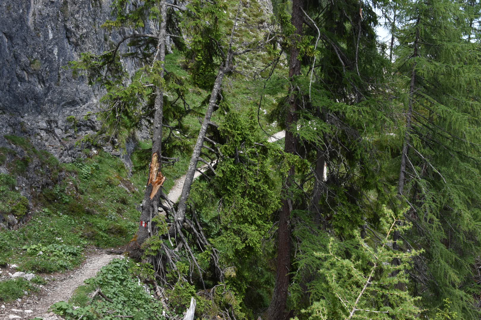 Proseguiamo fino ad incontrare un sentiero attrezzato, che ci condurrà, prima ad una panchina con postazione per i selfie, poi verso una parete su facili roccette dove l’esposizione è maggiore. Superata quest’ultima sarete arrivati alla fine della ferrata. Seguite il sentiero che vi porterà alla vostra meta, il Rifugio Gardenaccia.