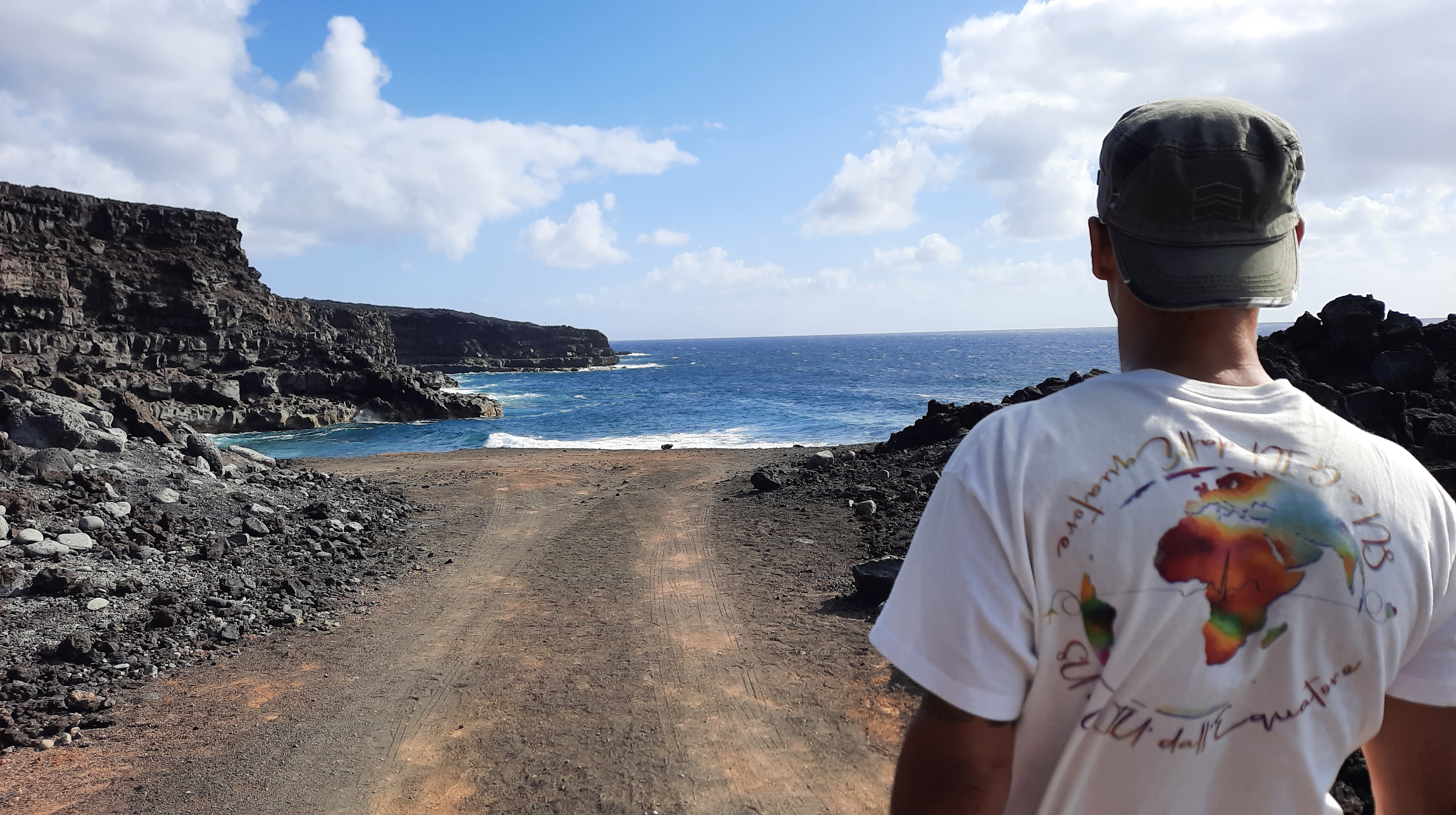 Ci stavamo recando verso il paese El Golfo, quando abbiamo visto una strada sterrata che si addentrava nell’entroterra. Controllando la cartina abbiamo visto che da lì potevamo arrivare a Playa del Paso, una spiaggia che non avevamo ancora visto ( clicca qui per vedere l’inizio dello sterrato). Abbiamo deciso di percorrerla e iniziare questa avventura.