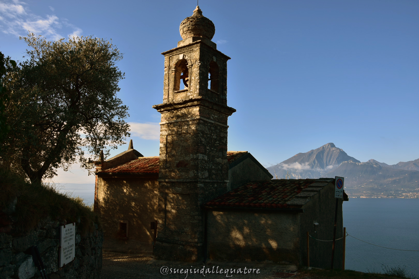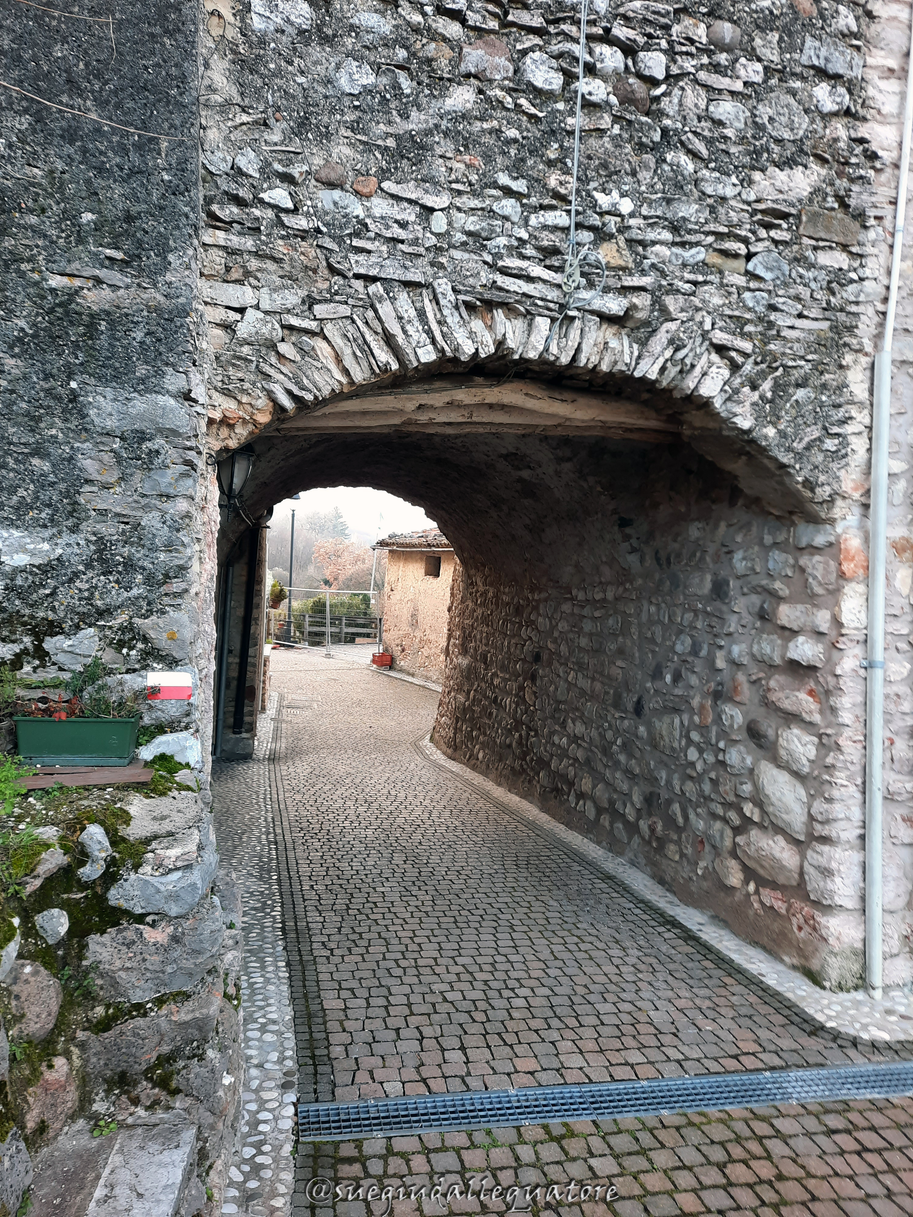 Nuovamente su strada asfaltata capirete di essere arrivati a San Zeno di Montagna. Dietro di voi i meravigliosi scorci sul Lago di Garda e sulle montagne limitrofe. Continuate a seguire la segnaletica bianca e rossa con la traccia che passa sotto un volto in mezzo alle case. Procedete lungo la strada in leggera salita. Arriverete ad un bivio, con i cartelli Cai che indicano Crero e il ponte tibetano verso destra. A voi la scelta. Potrete svoltare a destra incamminandovi verso il tratto di ritorno oppure, come abbiamo fatto noi, salire a San Zeno, che dista soli 5 minuti. Se deciderete di salire in paese consiglio di acquistare una fetta di strudel fatto in casa presso l’alimentari/forneria Salumeria Lenotti. Buonissimo! Finita la visita di San Zeno di Montagna siete pronti per scendere verso Crero.