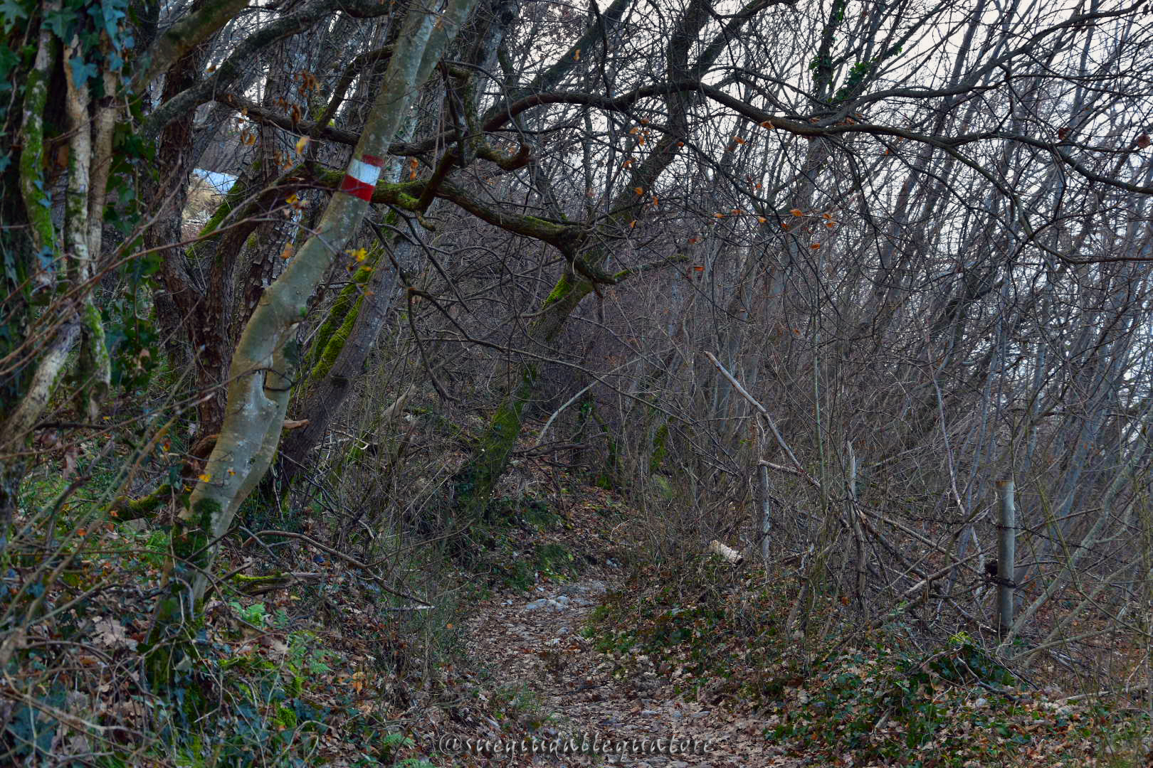 Il sentiero passa su mulattiera in salita costante ma mai eccessiva. Superate il bivio che scende al ponte tibetano tenendo la sinistra e proseguite seguendo la segnaletica bianca e rossa, ben visibile e abbondante lungo tutto il percorso.