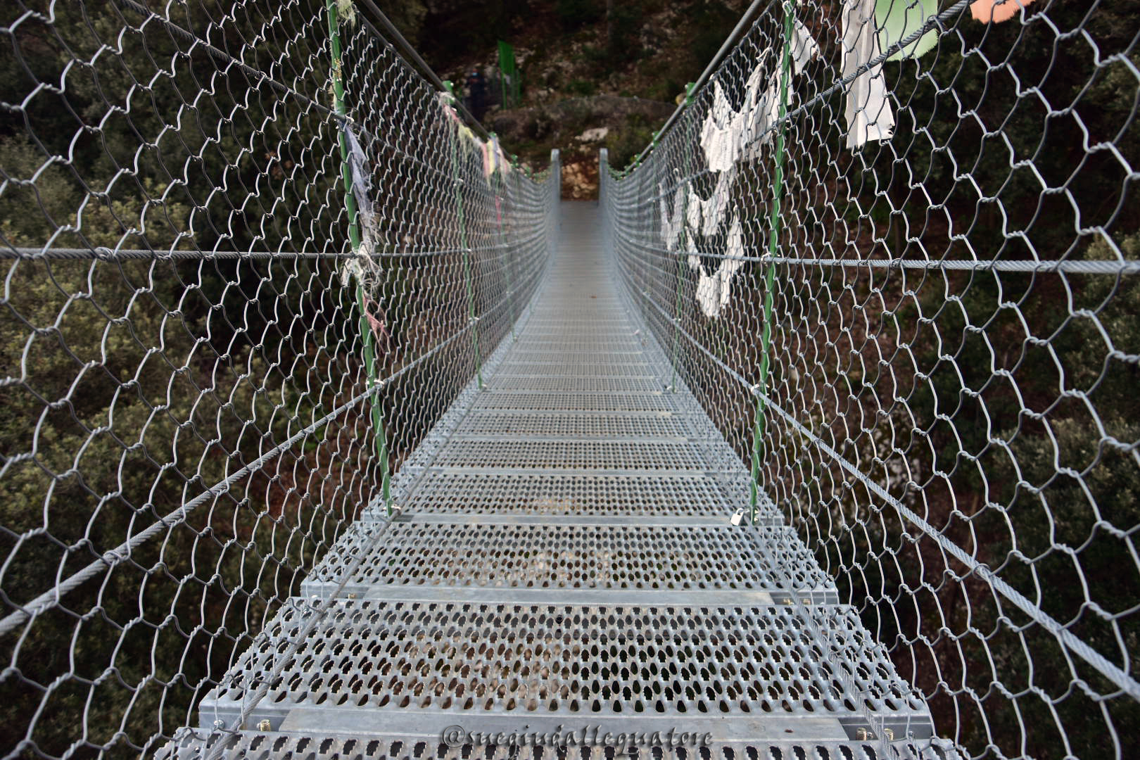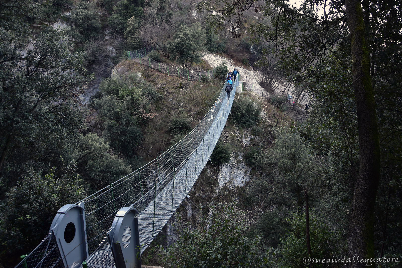 Svoltate a destra continuando a seguire la segnaletica in direzione del ponte. Dopo qualche curva e saliscendi, sarete arrivati al ponte tibetano di Crero.