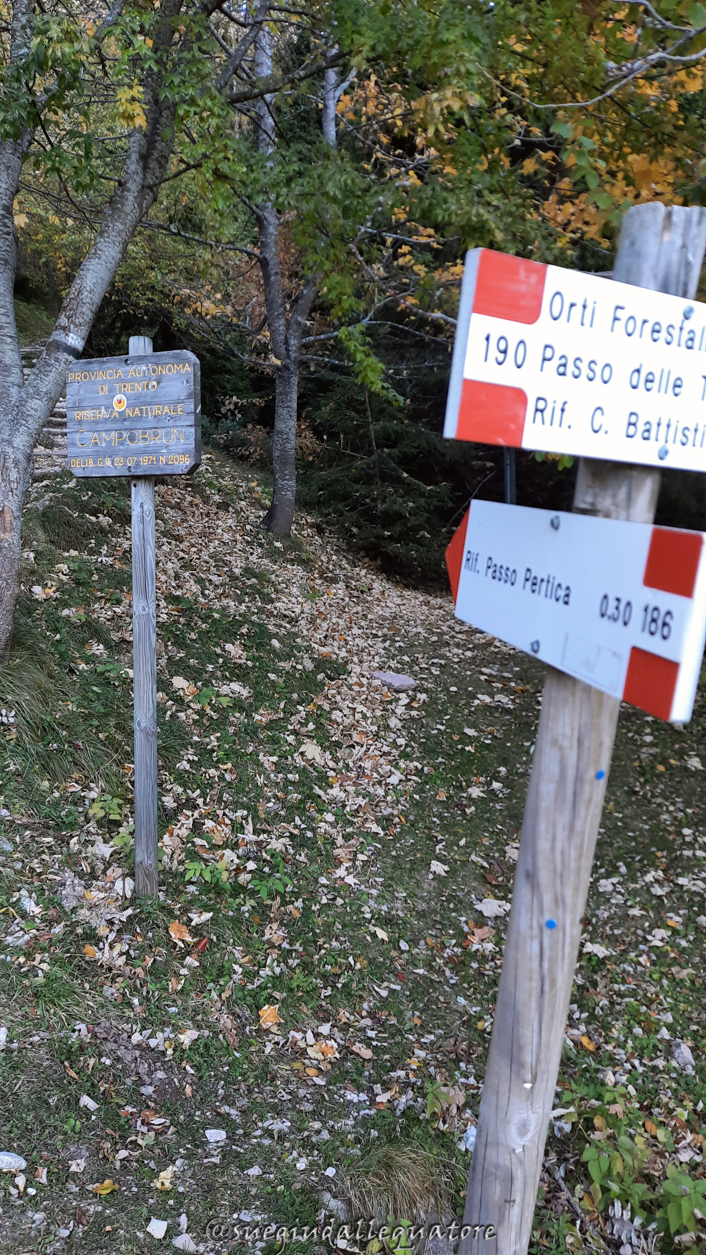 Il sentiero parte proprio dal parcheggio del rifugio Revolto. Tenendovi quest’ultimo sulla sinistra, si prosegue dritto salendo nel bosco seguendo il segnavia n°186 direzione passo Pertica. Dopo poco si passa su comoda strada forestale che sale non ripida fino a raggiungere il Passo Pertica (1530 slm) e il suo rifugio in circa 20 minuti. A questo punto proseguite verso destra, sempre su strada forestale, sul sentiero 109, direzione rifugio Scalorbi.