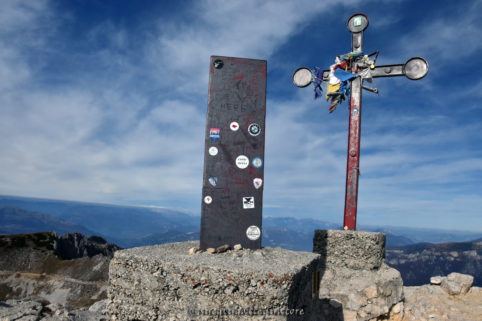Dal rifugio Fraccaroli, in brevissimo tempo si sale sulla cima del Monte Carega e alla sua croce, situata a 2259 slm.