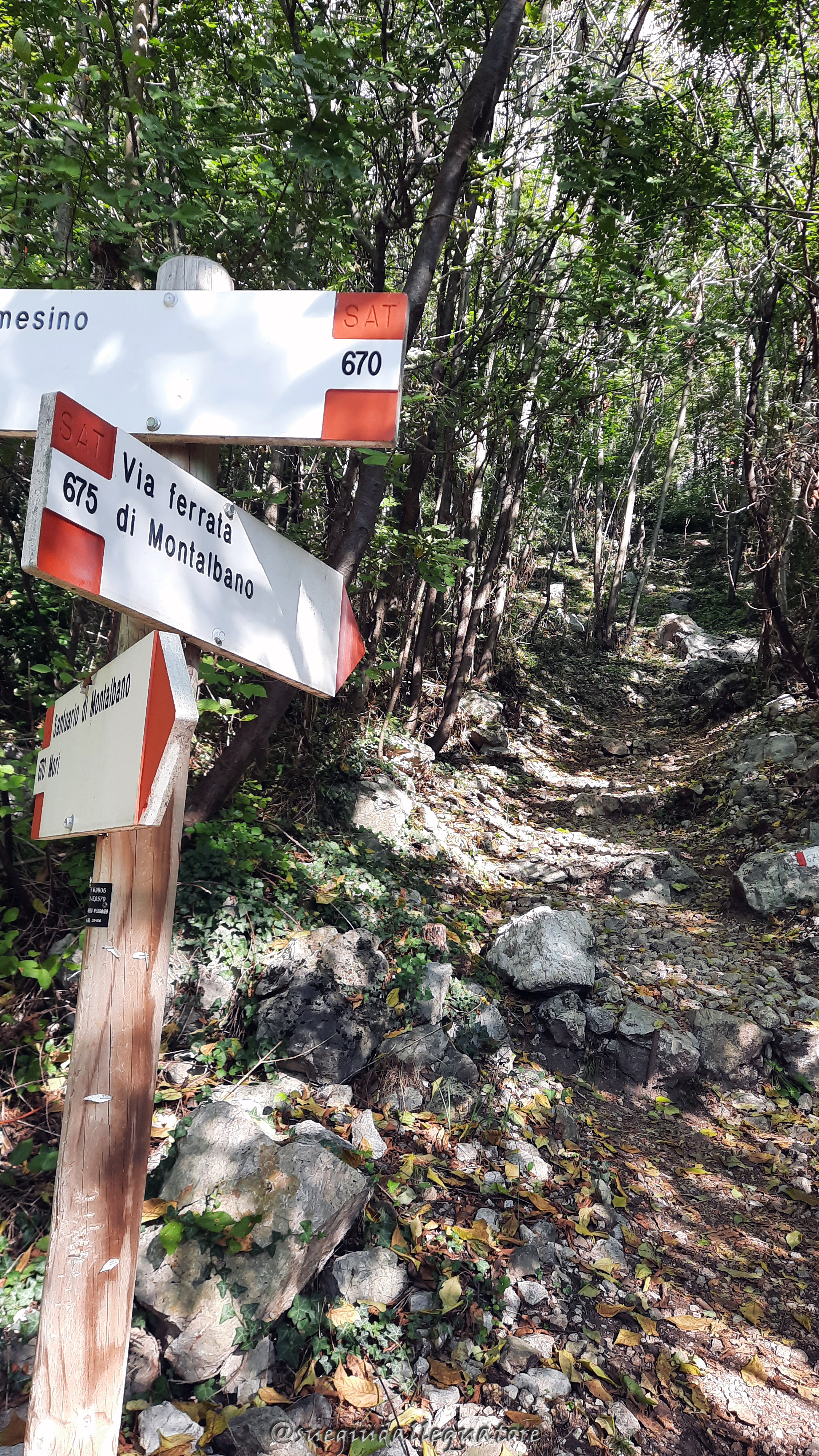 Una volta pronti seguite il sentiero 675 fino al bivio che vi indicherà la ferrata salendo verso destra. Proseguite in salita fino all’attacco della ferrata e alla sua targa.