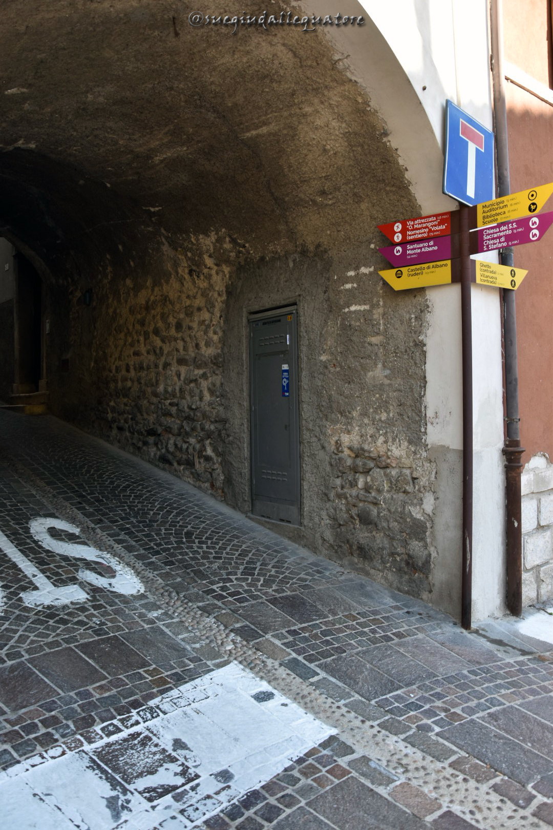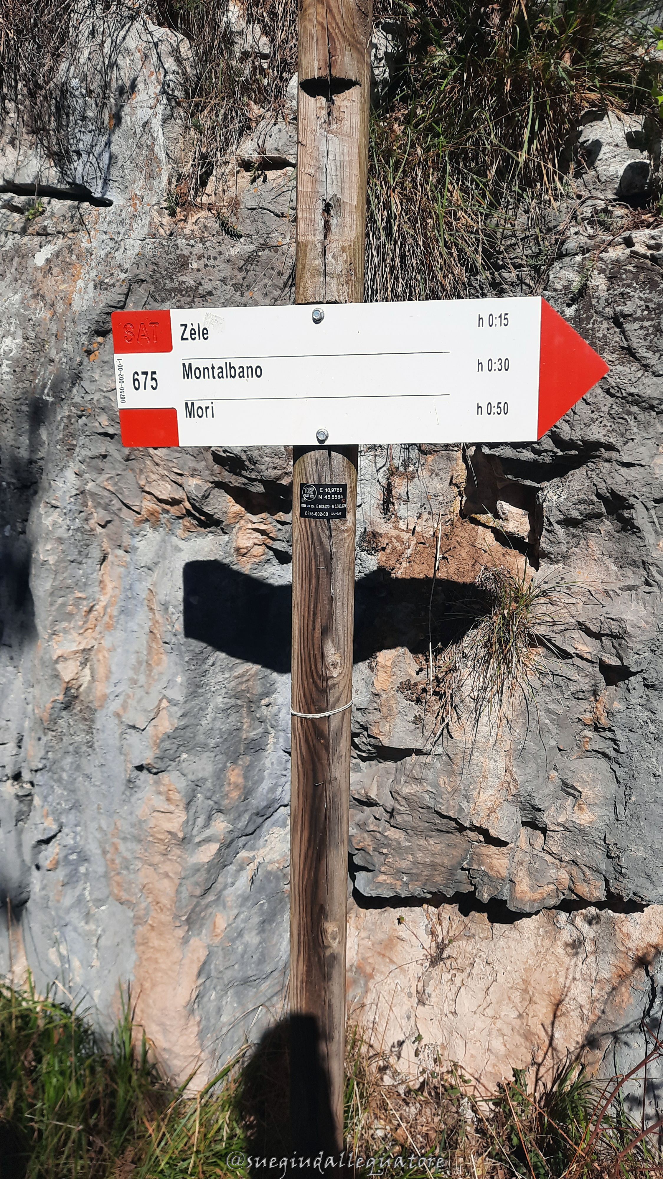 Lasciandovi il parcheggio sulla destra, seguite la strada asfaltata, salite una piccola scalinata che incontrerete sulla sinistra e proseguite fino ad un volto, dove incontrerete i primi segnavia. Ho trovato interessante la storia del paese di Mori che potrete leggere su di un pannello informativo posto sulla sinistra del volto.