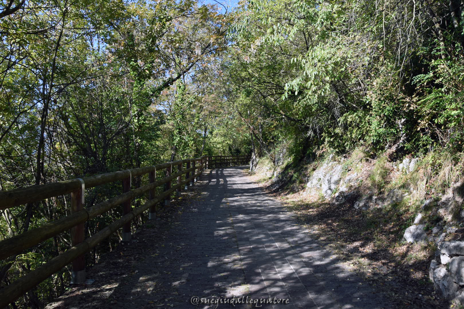 Superate un camino con l’aiuto di cambre messe nei punti più difficili fino ad arrivare ad un piano dove staccherete momentaneamente i moschettoni. Sulla vostra sinistra una parete verticale di circa 8-10 metri che supererete facilmente con l’aiuto di staffe.