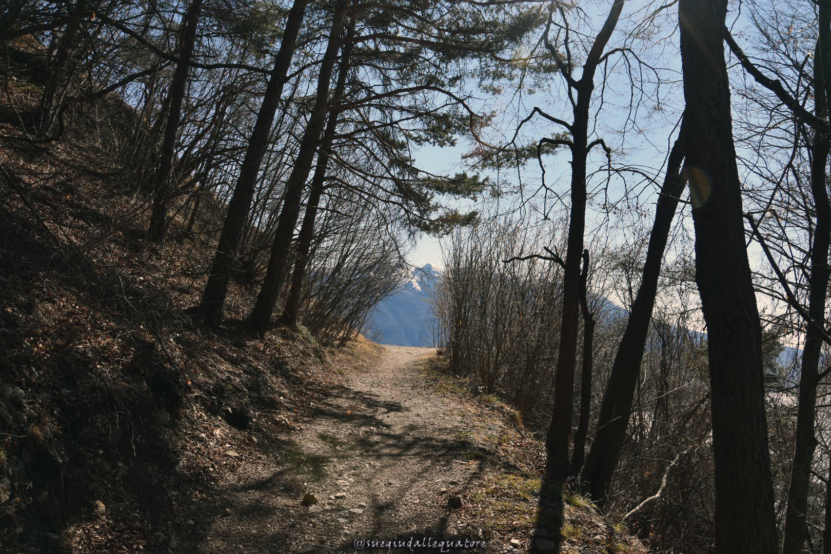 Da qui si ripassa in cresta seguendo le indicazioni per Pregasina – Bocca Larici. Il sentiero parte verso destra, per poi scendere in parte nel sottobosco. Fare attenzione a non prendere quello che entra nel bosco in discesa.
