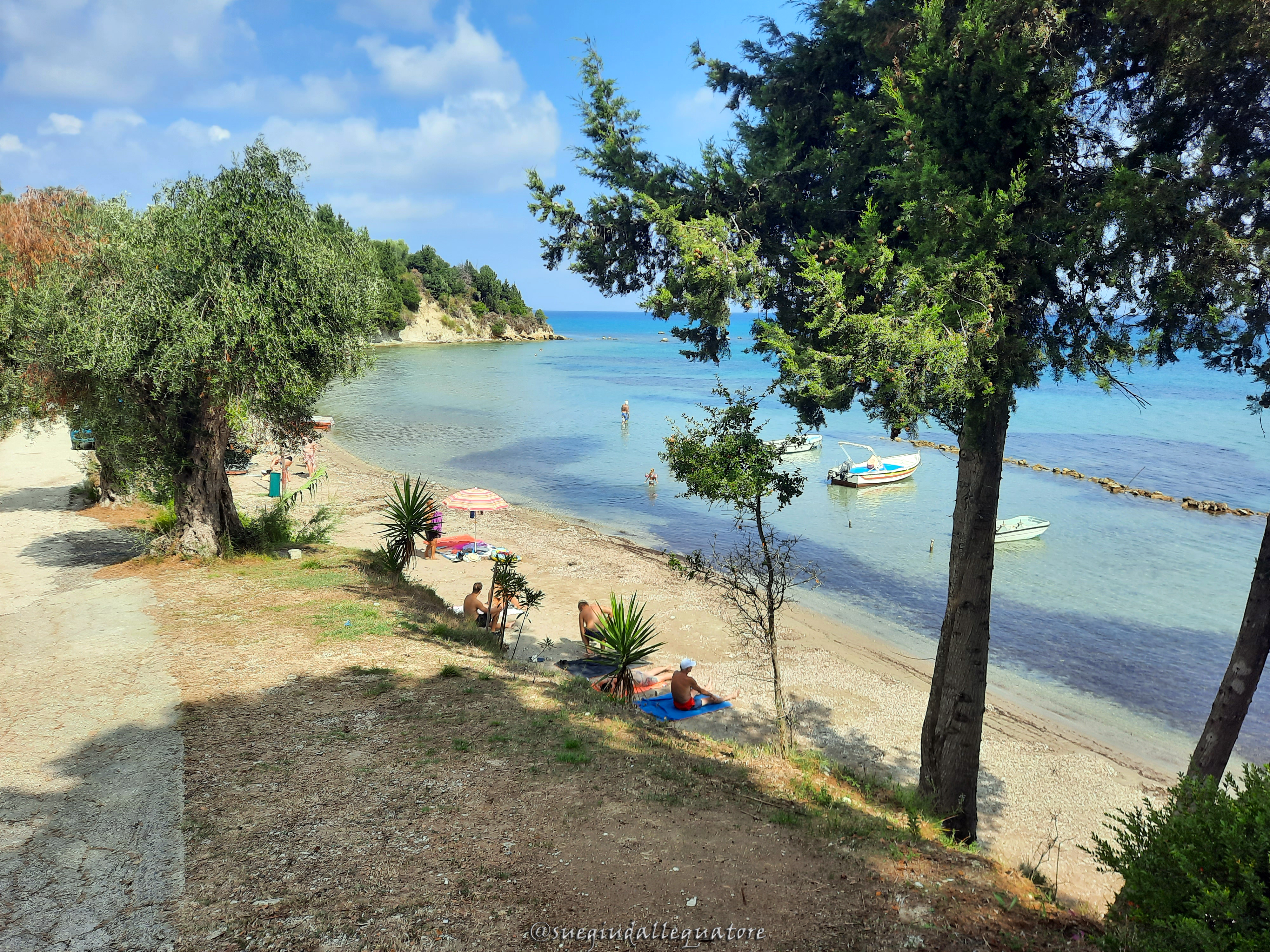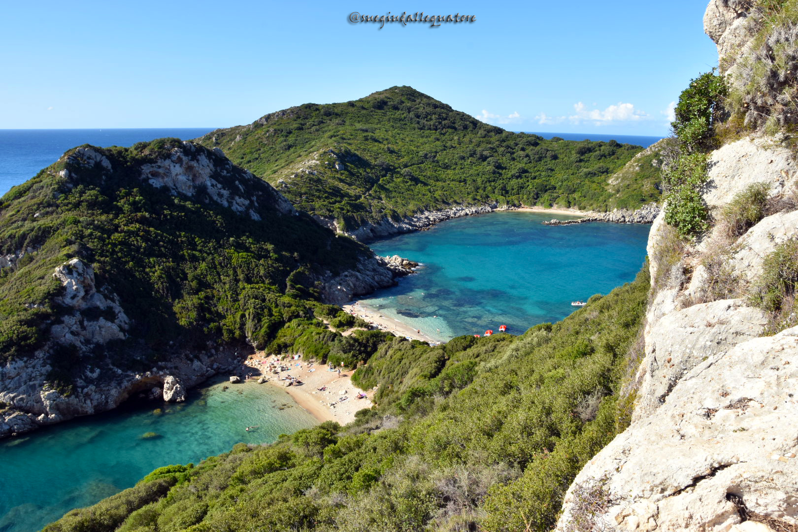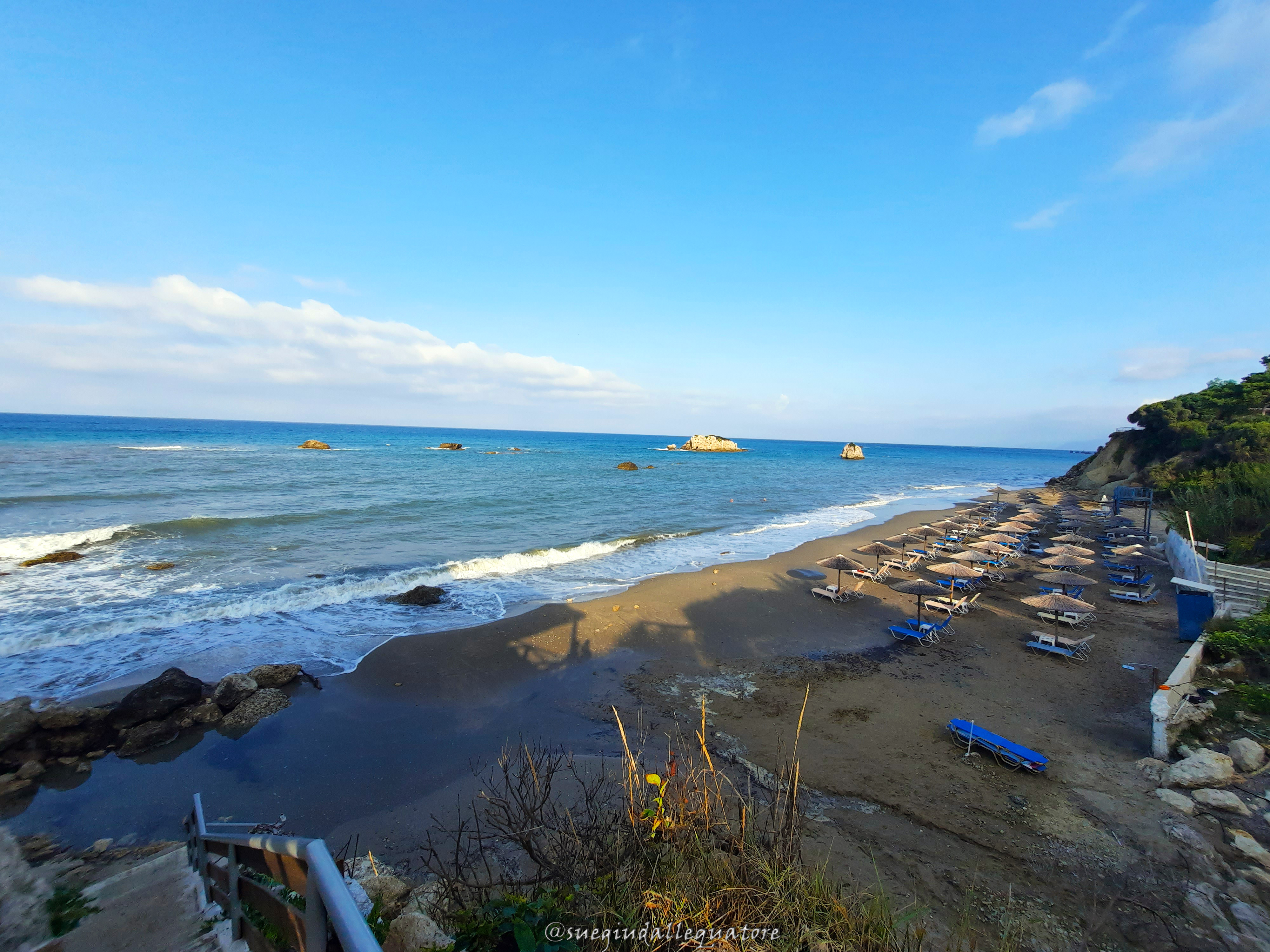 Ultima spiaggia che abbiamo visitato ma sicuramente una delle più belle in assoluto. Selvaggia, di ciottoli con mare stupendo. Situata a Nord-Ovest, poco sotto Paleokastritsa, questa spiaggia non è facilissima da trovare. E’ possibile parcheggiare lungo la strada per poi percorrere a piedi circa 1 km oppure fare un pezzo di strada sterrata fino ad arrivare ai due parcheggi a pagamento (3 euro tutto il giorno). Essendo molto conosciuto è anche una delle più frequentate, anche se noi, essendo un po’ fuori stagione, ce la siamo goduta. Non si tratta di una spiaggia attrezzata. Durante la giornata passa un paio di volte la Canteen Boat, una piccola barca che funge da bar galleggiante. Clicca qui per la posizione del parcheggio più vicino alla spiaggia. Da qui bisogna proseguire a piedi per circa 7/8 minuti.