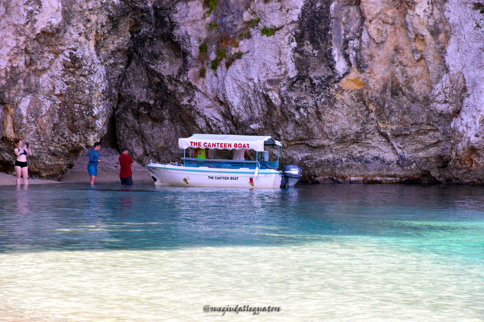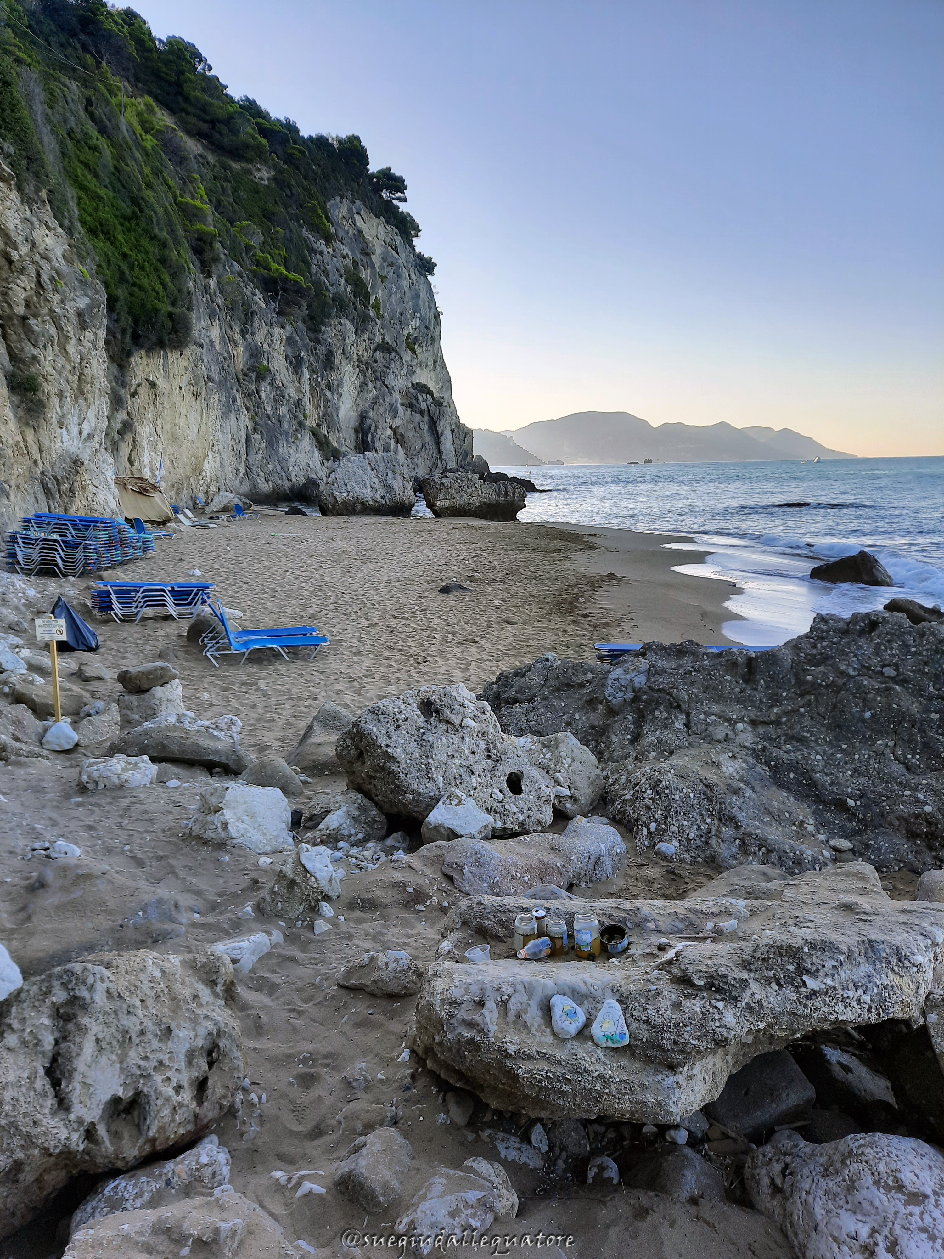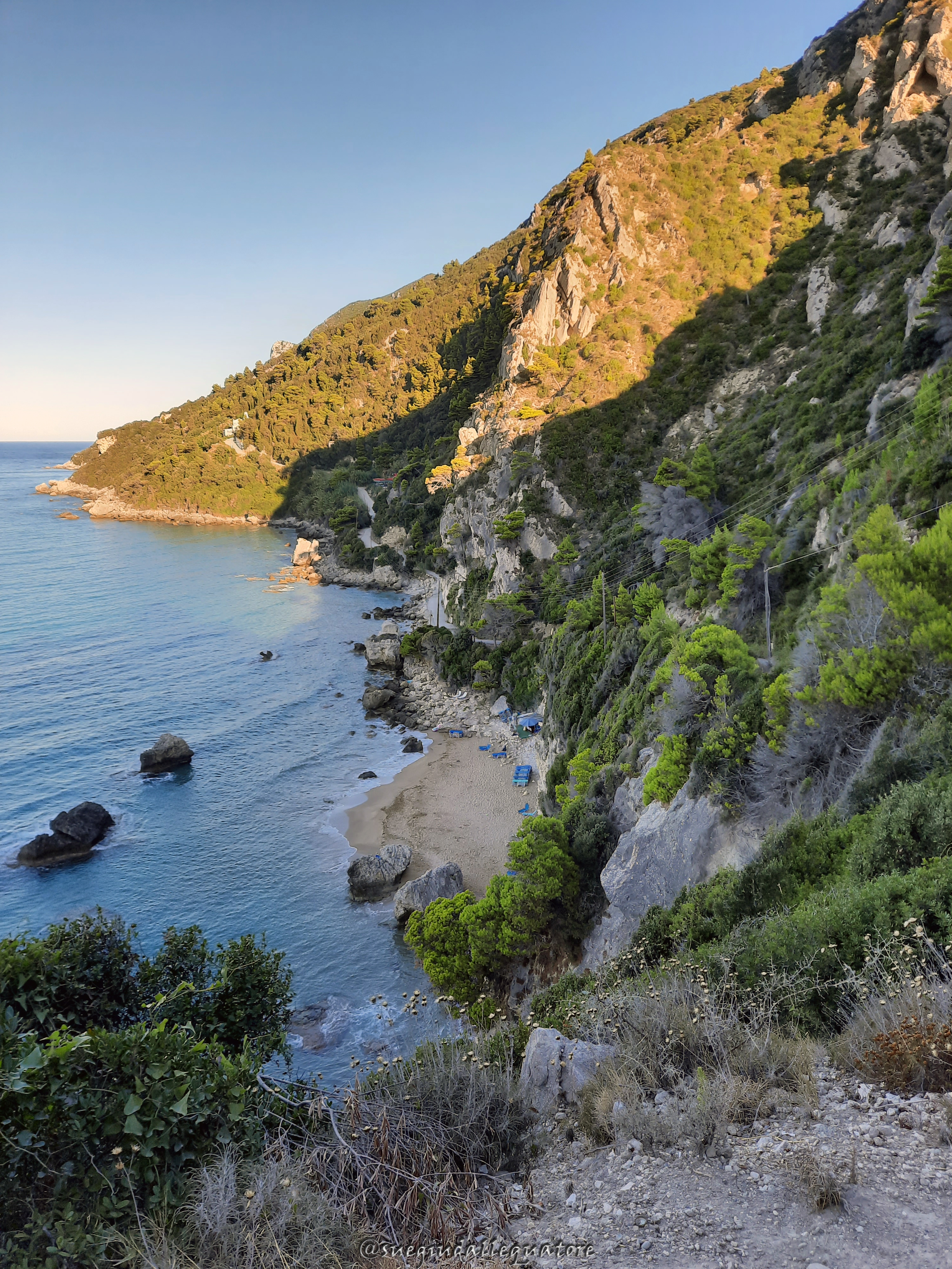 Ultima spiaggia che abbiamo visitato ma sicuramente una delle più belle in assoluto. Selvaggia, di ciottoli con mare stupendo. Situata a Nord-Ovest, poco sotto Paleokastritsa, questa spiaggia non è facilissima da trovare. E’ possibile parcheggiare lungo la strada per poi percorrere a piedi circa 1 km oppure fare un pezzo di strada sterrata fino ad arrivare ai due parcheggi a pagamento (3 euro tutto il giorno). Essendo molto conosciuto è anche una delle più frequentate, anche se noi, essendo un po’ fuori stagione, ce la siamo goduta. Non si tratta di una spiaggia attrezzata. Durante la giornata passa un paio di volte la Canteen Boat, una piccola barca che funge da bar galleggiante. Clicca qui per la posizione del parcheggio più vicino alla spiaggia. Da qui bisogna proseguire a piedi per circa 7/8 minuti.