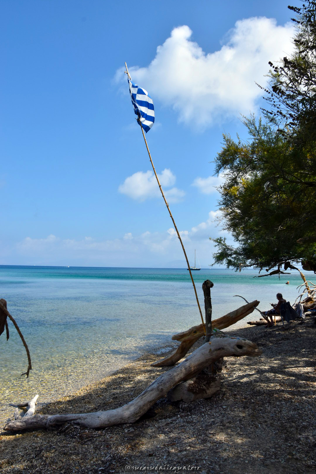 Essendo la spiaggia più vicina al nostro alloggio è stata la prima che abbiamo visitato. Situata a Ovest dell’isola, si tratta di una piccola spiaggia di sabbia, incastonata tra le rocce. E’ possibile noleggiare uno lettino direttamente in loco anche se si tratta di una spiaggia prevalentemente libera. Molto frequentata da nudisti. Per raggiungerla dovrete parcheggiare la macchina presso la taverna Elia e proseguire a piedi in discesa per circa 10 minuti. Troverete delle scale leggermente nascoste dalla vegetazione che vi condurranno direttamente in spiaggia. Clicca qui per la posizione.