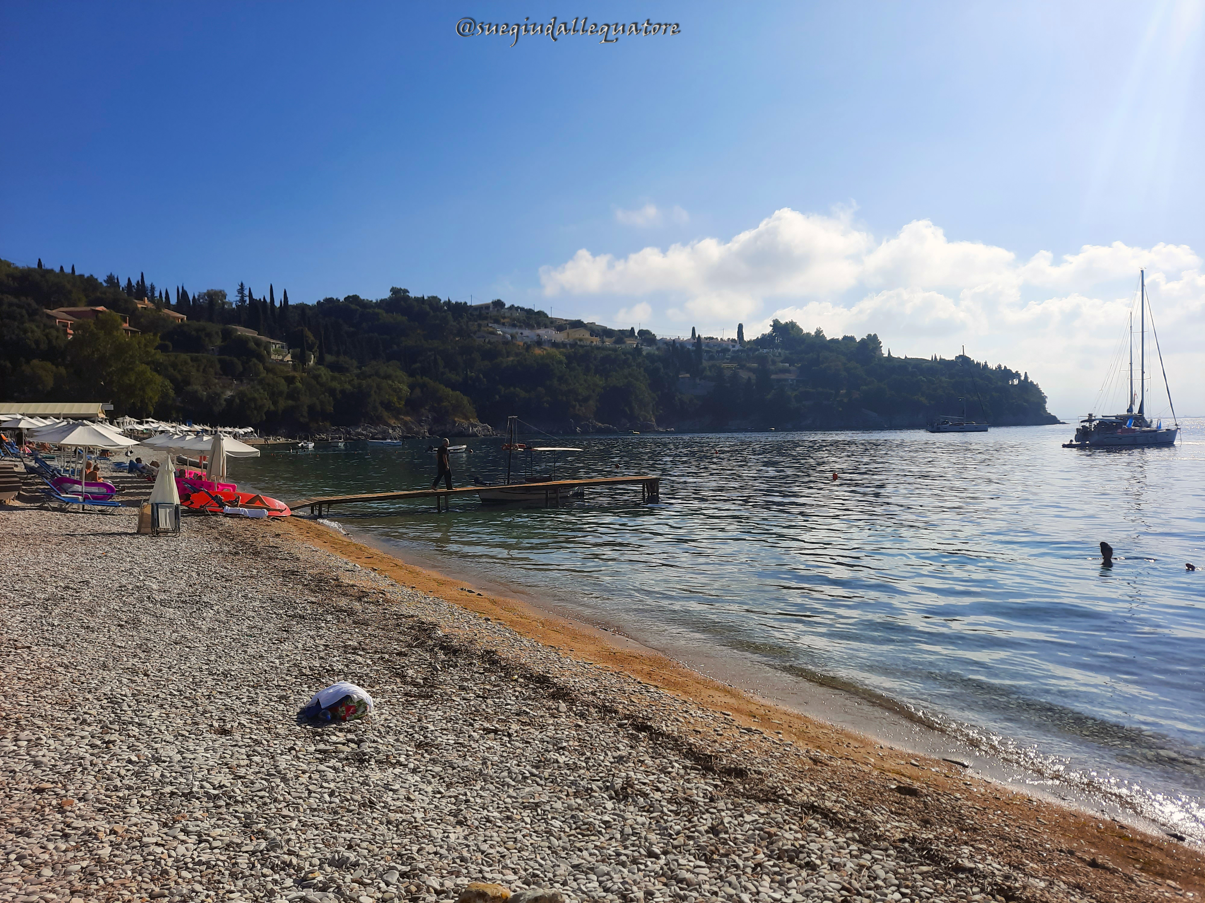 Oserei dire la nostra spiaggia preferita di Corfù. Tranquilla, incastonata in una natura incontaminata e con un mare da favola. Questa spiaggia di ciottoli, situata a Nord-Est dell’isola, è facile da raggiungere e offre un comodissimo e grande parcheggio gratuito. E’ in gran parte libera anche se c’è la possibilità di noleggiare sdraio e ombrellone nei pressi della taverna. Il mare è un incanto e scende subito profondo, ottimo per chi ama fare snorkeling. Nelle vicinanze della spiaggia partono tanti sentieri che raggiungono altre spiagge nascoste. Durante la giornata passa un piccolo furgoncino che vende ottima frutta fresca. Clicca qui per la posizione.