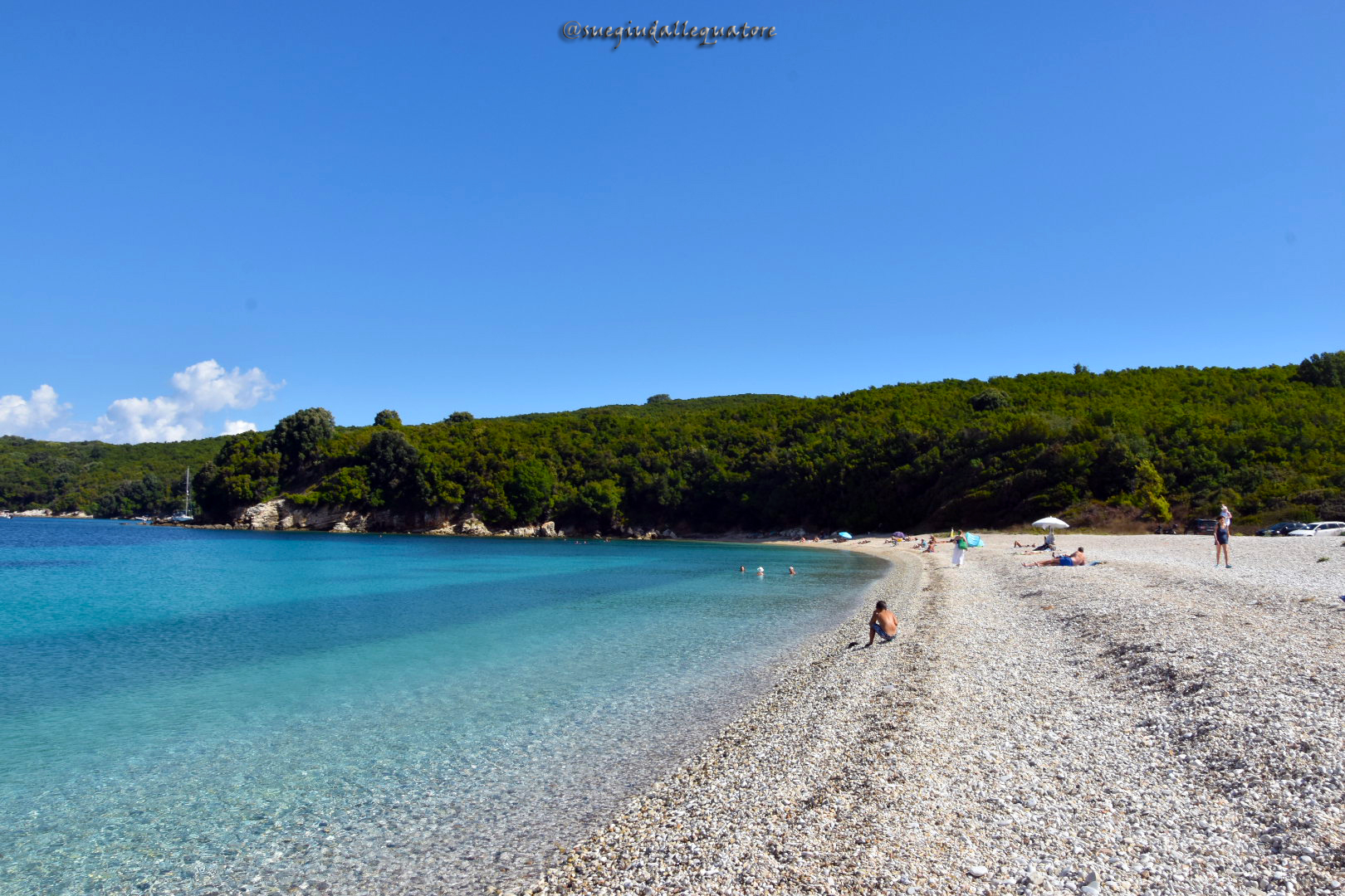 Unica spiaggia dove abbiamo approfittato di ombrellone e lettini, al costo di 10 Euro. Situata a Nord-Est, questo tranquillo litorale di ciottoli è l’ideale per godersi una giornata di pieno relax. Dispone di parcheggio gratuito e di una taverna e un bar dove mangiare o bere qualcosa. Il mare è stupendo, cristallino e con colori meravigliosi. Clicca qui per la posizione.