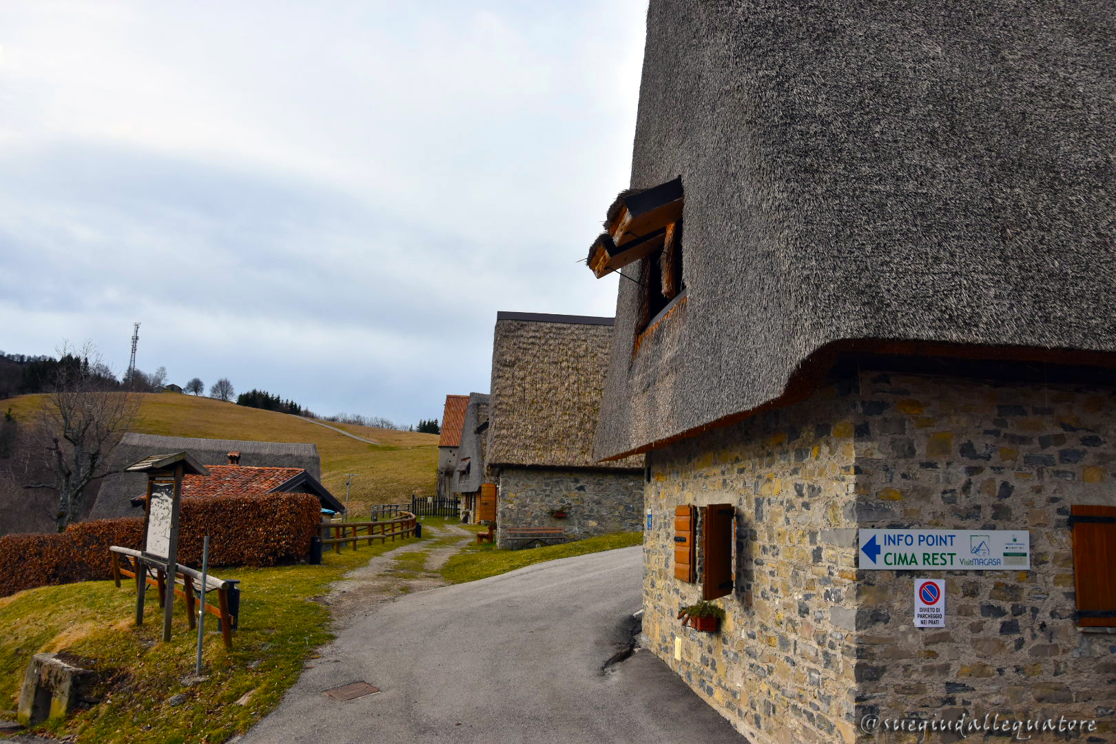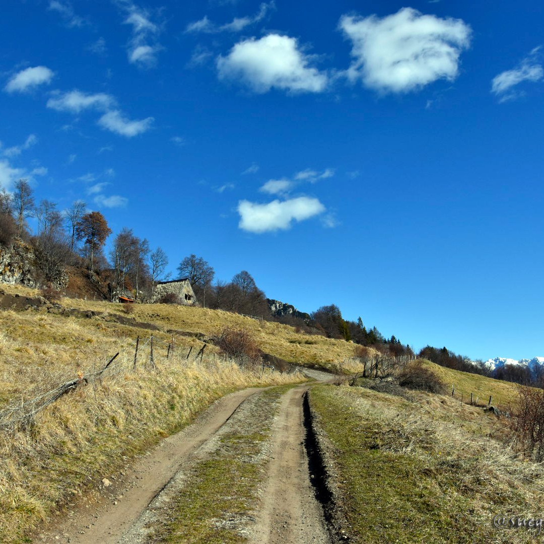 Dal parcheggio ripercorrete la strada asfaltata dalla quale siete arrivati per circa 150 metri, camminando tra gli iconici fienili di Cima Rest. Sulla destra troverete i primi cartelli che indicano Malga Tombea. Svoltate e seguite una stradina carrabile che sale ripida tra i prati, sul sentiero 299.