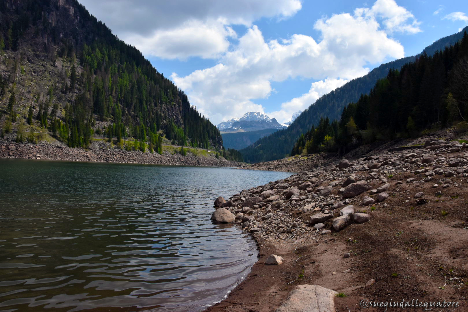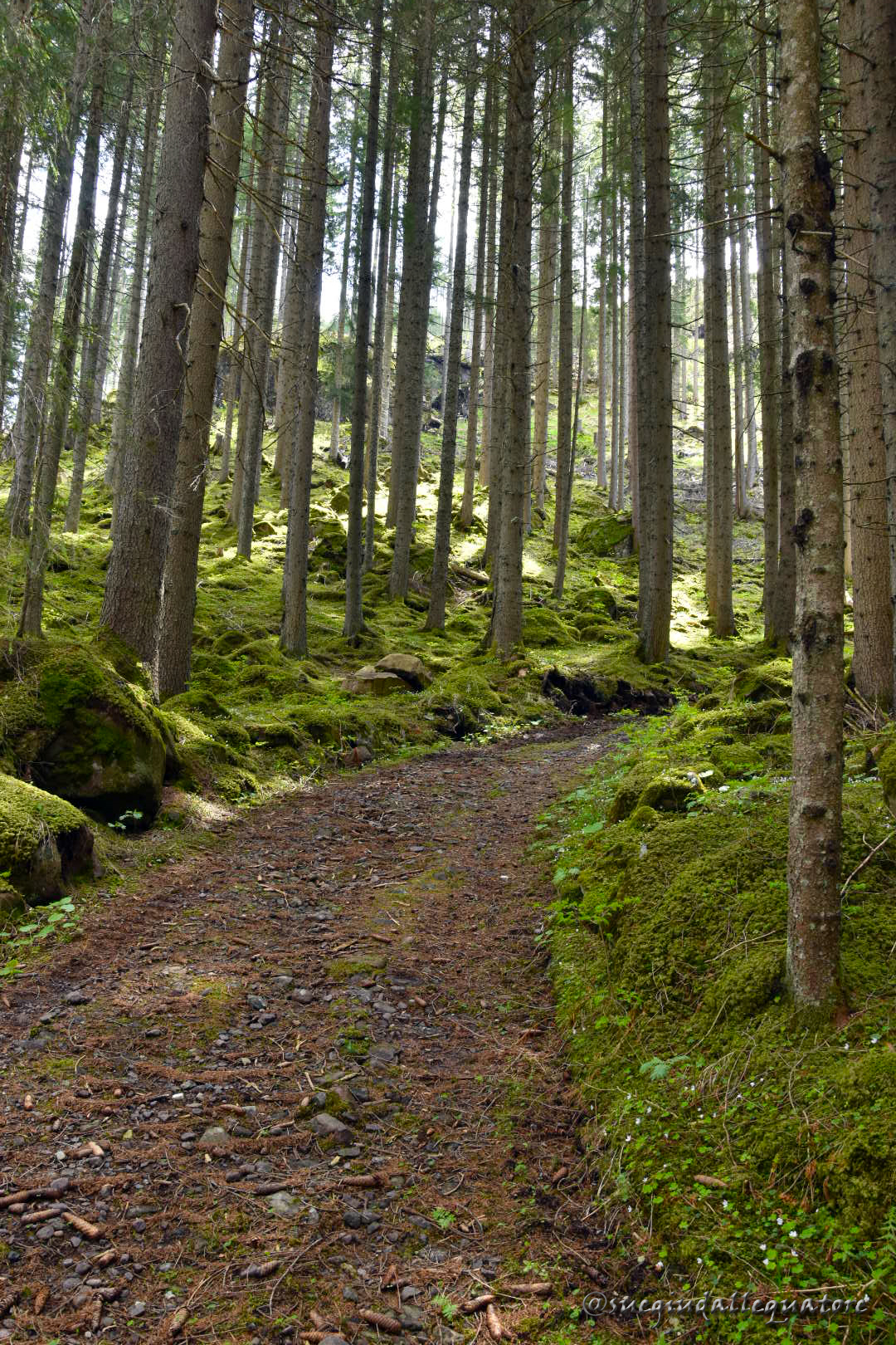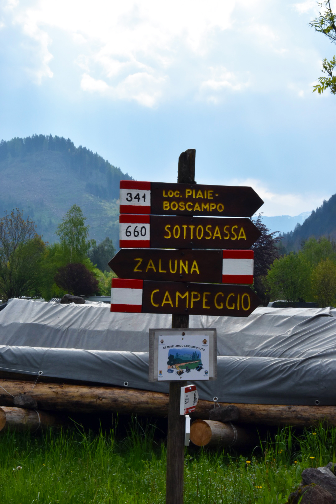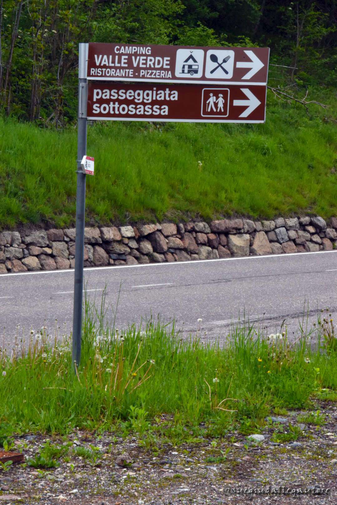 Il sentiero, nel nostro caso, partiva proprio dietro l’area di sosta, accanto al fiume Travignolo. Il numero del sentiero che dovete seguire fino al lago è il 660 (potete tenere come riferimento anche il sentiero bike numero 933). Camminate tenendovi il torrente sulla destra seguendo le indicazioni per Paneveggio fino ad arrivare al campeggio Valleverde. Superatelo ed al successivo bivio tenete la destra.