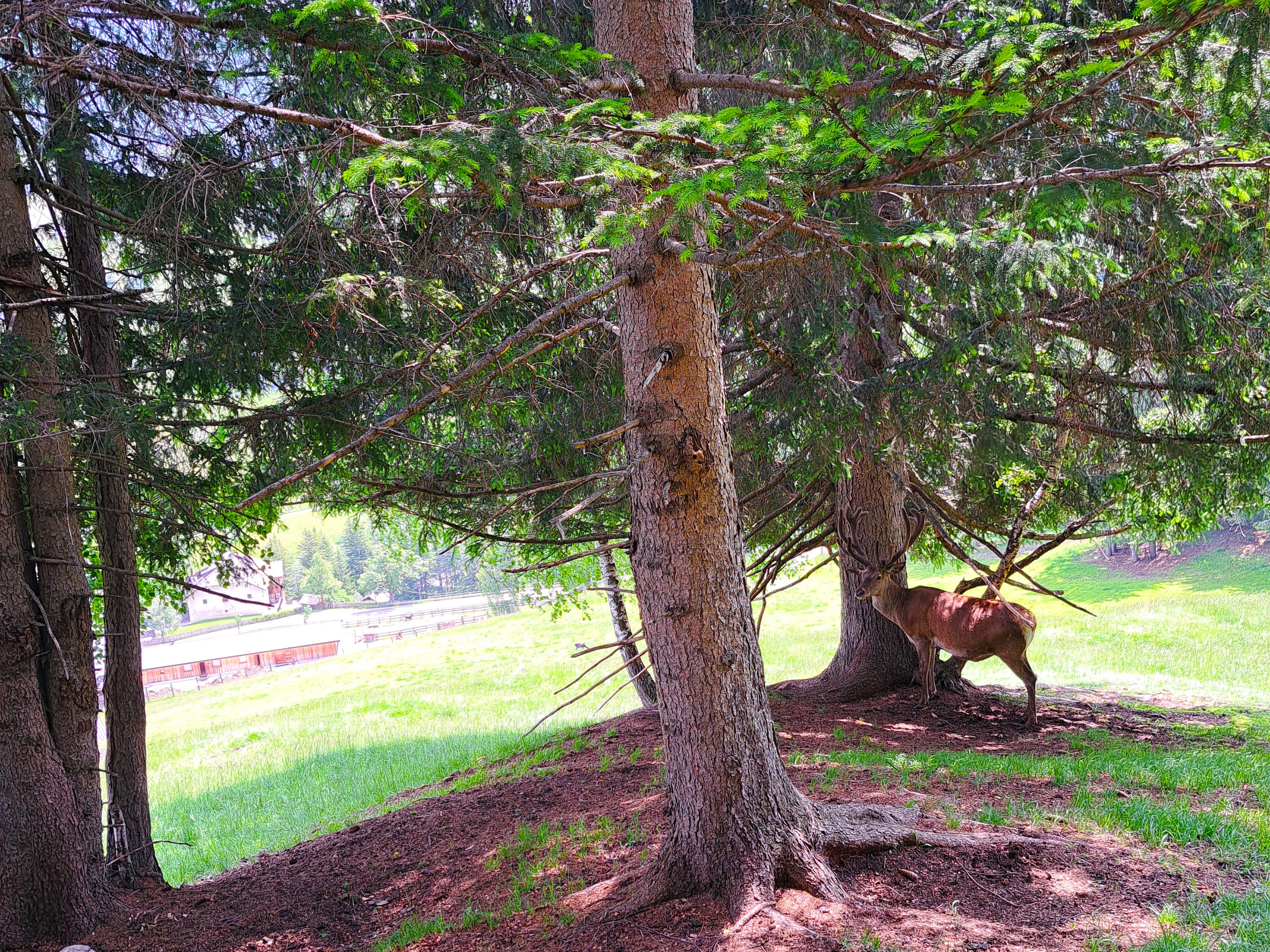 Per rientrare al parcheggio bisogna seguire la strada asfaltata che scende a destra in direzione della Villa. Passate dietro al parco dei cervi (se avete fortuna potreste vederne qualcuno vicino alla recinzione) e tornate sulla strada principale. Da qui dovrete solo proseguire fino al parcheggio della seggiovia.